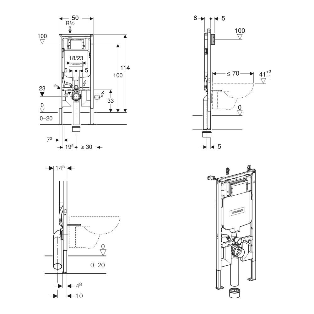 Geberit Duofix 114cm High Frame With 8cm Sigma Concealed Cistern For Wall Hung WC