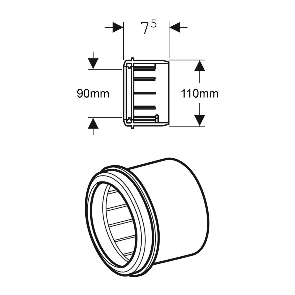 This Geberit HDPE adapter socket with 110 x 90mm push-fit x plain end connections is suitable for a range of uses in building and roof drainage in industrial, commercial and laboratory settings and can be installed in-ground, in concrete or during bridge construction.