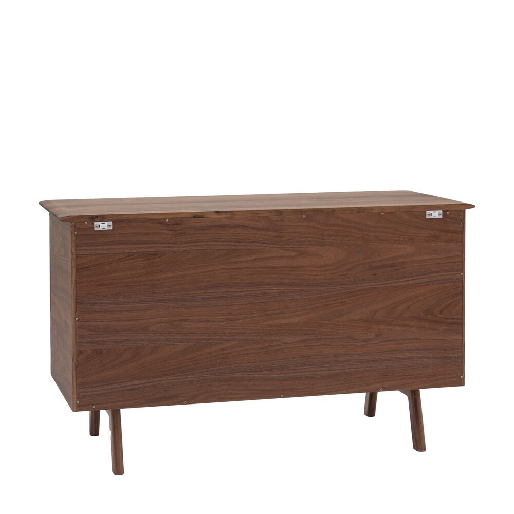 This 2 door sideboard in Walnut is a stylish and functional addition to the Madrid range, inspired by mid-century modern design. This sideboard features two spacious doors that provide ample storage space for your belongings. The clean lines and tapered legs create a minimalist and modern look, while the rich walnut finish adds a touch of luxury and warmth to any room. Perfect for use in the living room, dining room, or hallway.