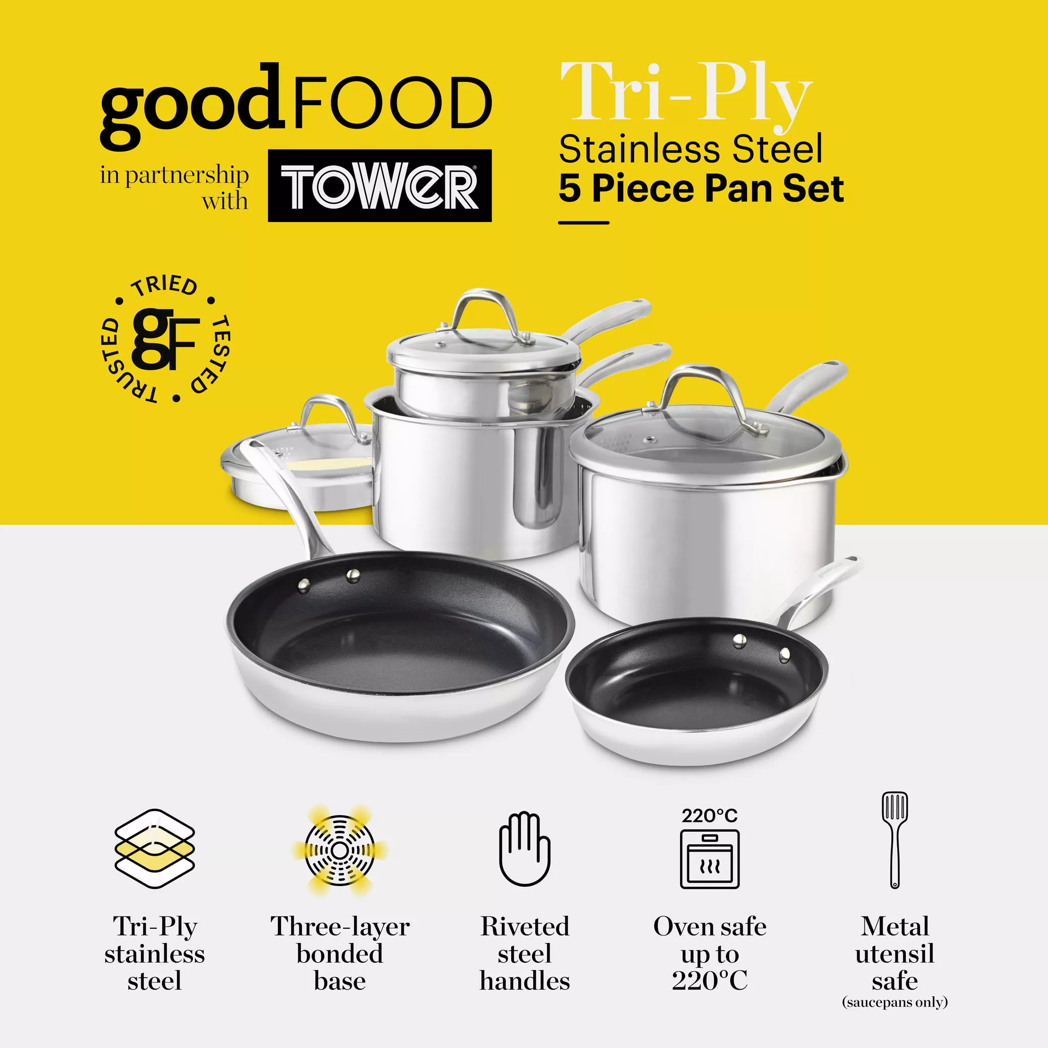 Good Food By Tower GF900276 Tri-Ply 5 Piece Cookware Set