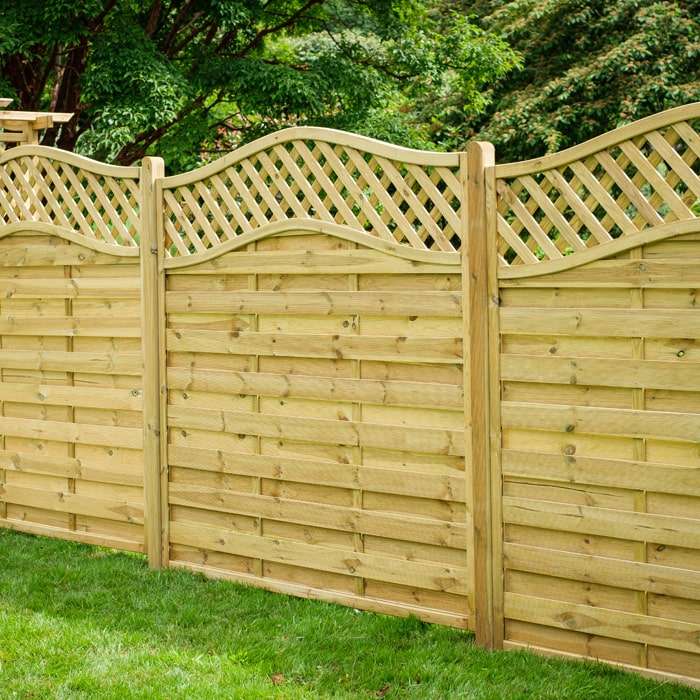 The Elite Meloir Fence Panel offers a decorative design to suit many styles of garden settings. The horizontal timber slats and wave top lattice are planed, rounded and grooved and fixed into a strong rebated frame. This panel is also pressure-treated providing protection and appearance retention.