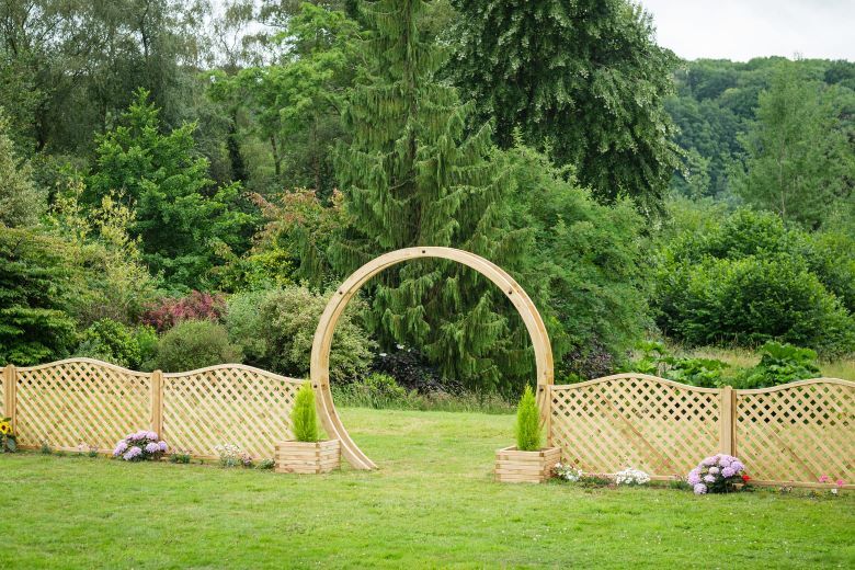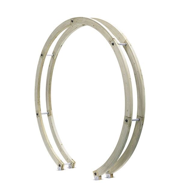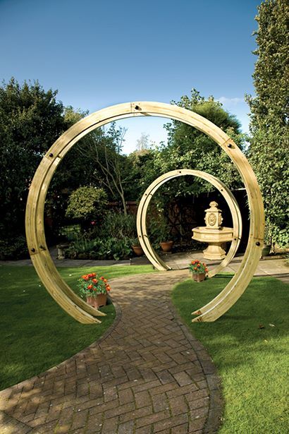 The contemporary Flower Circle is constructed using two pressure-treated timber rounded beams closely connected with stainless steel rods to create a sculptural archway. This versatile product can be used singularly or with multiples to create a unique pathway.