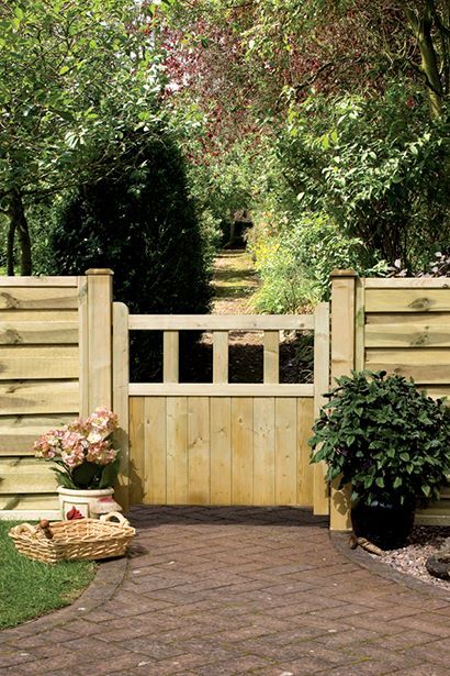 A gate with simple, clean lines crafted from planed timber. Pressure-treated for protection against wood rot and fungal decay with the option to hang from either side.