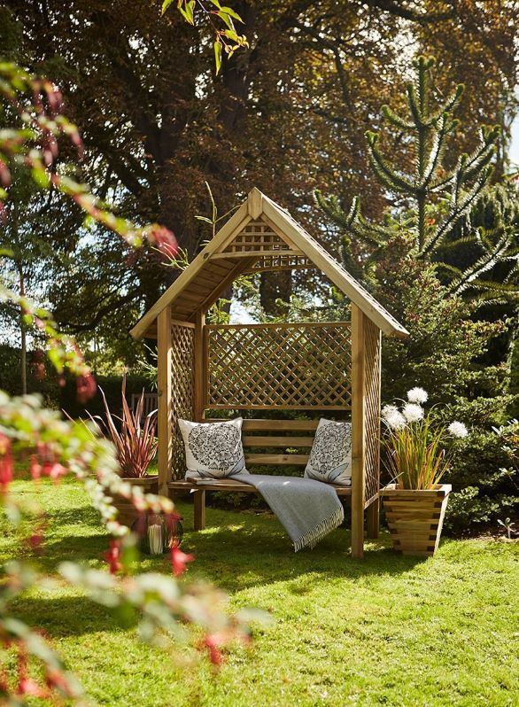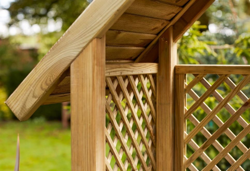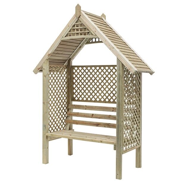 This classic arbour is designed with diamond trellis sides and back to support climbing plants. The slatted roof provides extra protection from the sun, and the sturdy yet comfortable bench enables you to sit back and relax. It is made from pressure-treated timber for long lasting protection.
