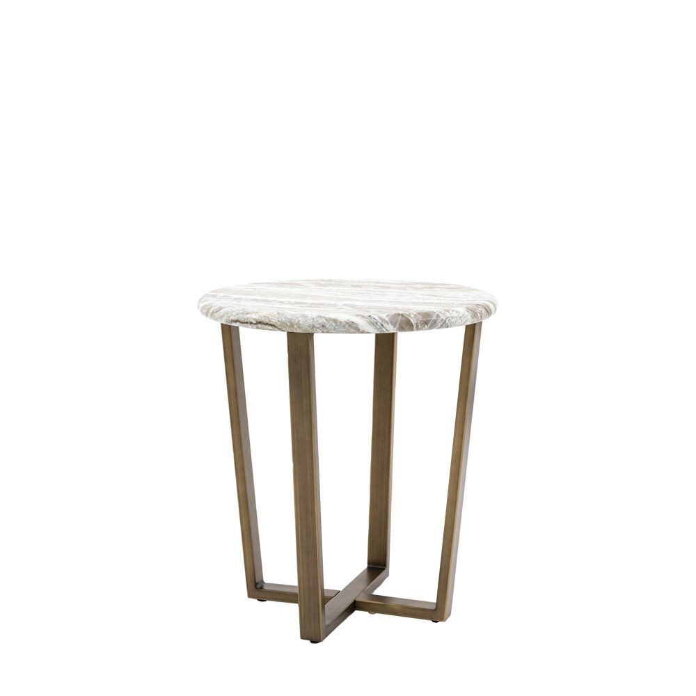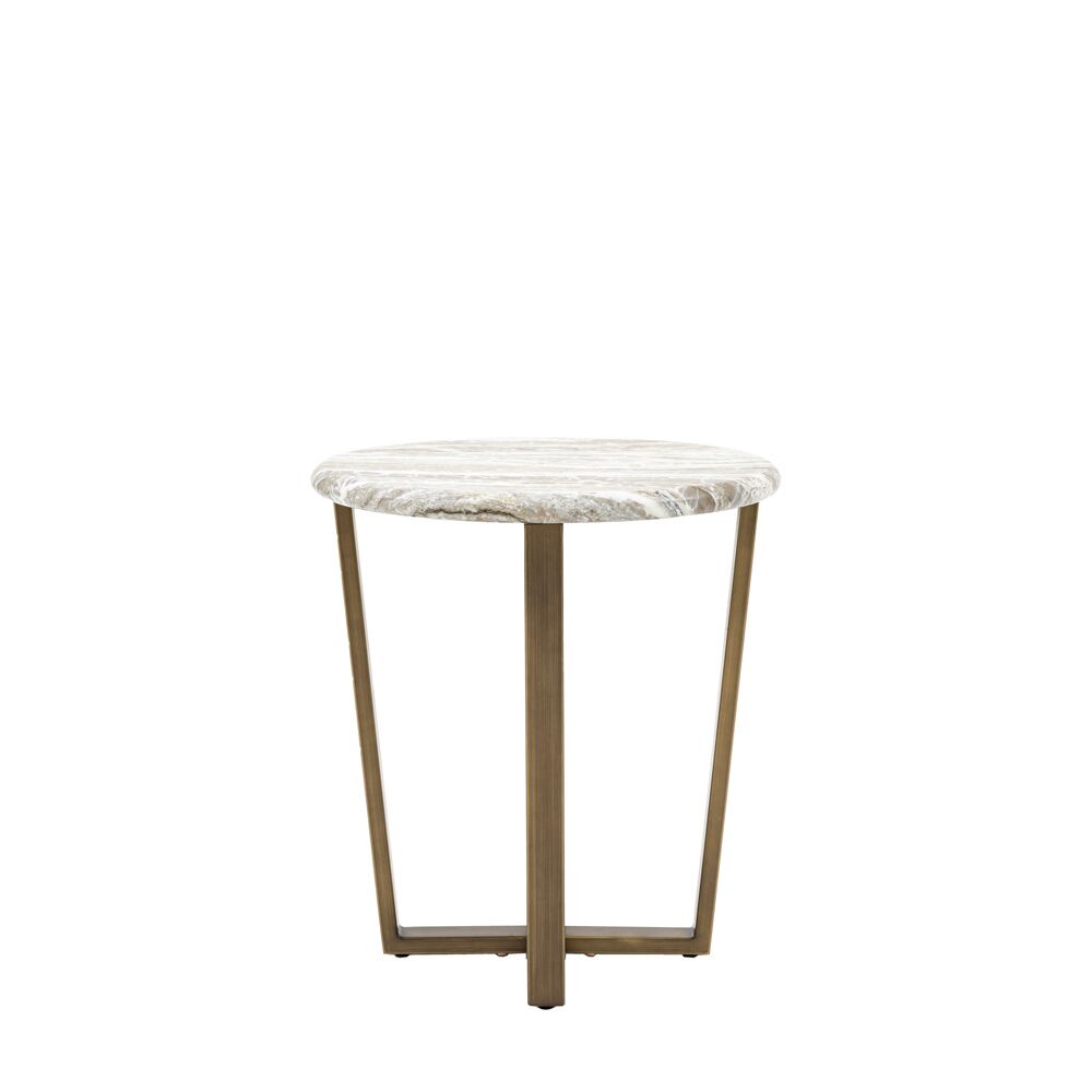 This lovely side table will add a touch of sophisticated elegance to a room. The stunning top features the most amazing green-grey marble faux finish which is created with the latest state of the art technology to give the look and feel of the real thing but without the weight and technical difficulties. The faux marble is perfectly complemented by the metal base which has a classy bronzed brass finish, to give an understated luxury style, perfect for any classic modern interior. Matching items also available.