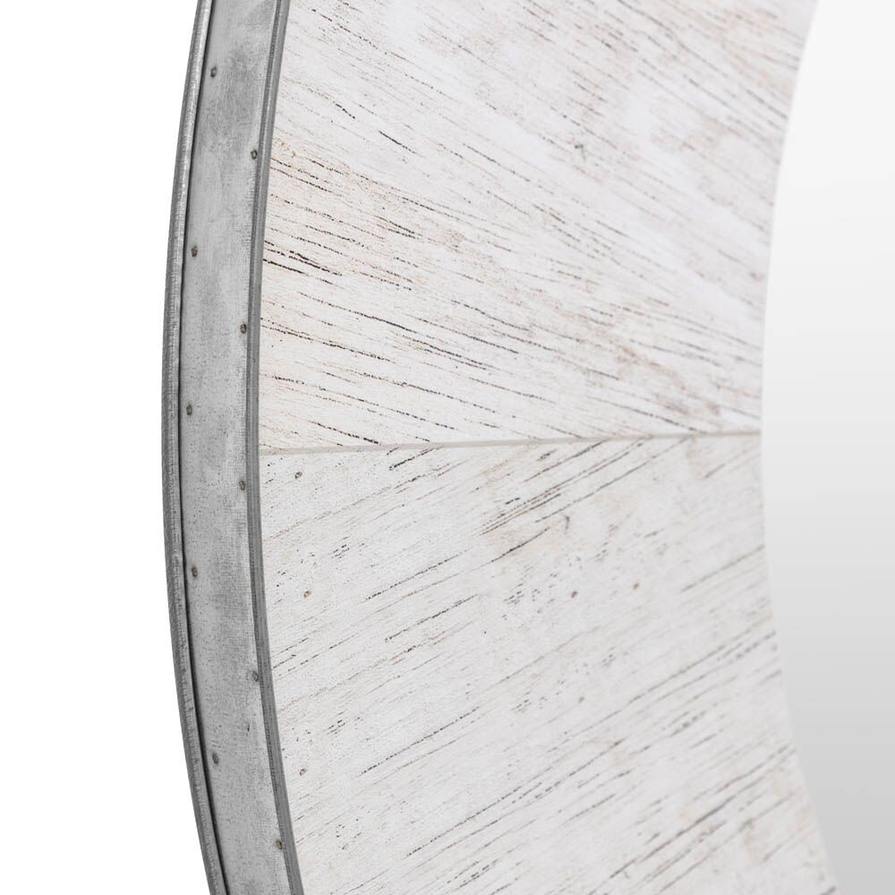 Transform your space with our industrial-modern mirror. Elevate your decor with our stunning rectangular mirror, designed to make a bold statement in any room. The sleek industrial metal edge lends a contemporary edge, while the thick whitewashed wooden frame adds a touch of rustic elegance. The whitewash treatment enhances the natural grain of the wood, bringing warmth and texture to the piece. Perfect for creating a striking focal point in living rooms, entryways, or bedrooms, this mirror seamlessly blends industrial chic with classic charm. Redefine your space with a piece that combines both style and functionality.