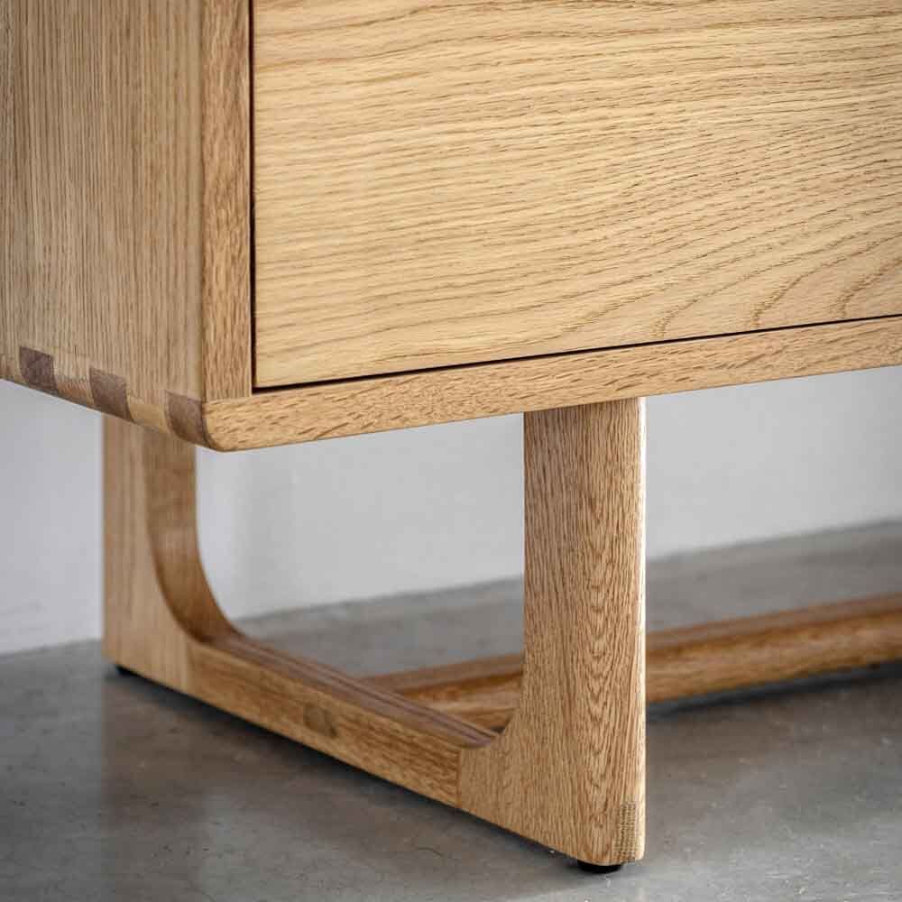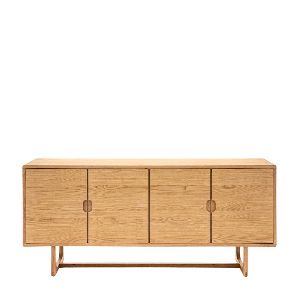 This stylish sideboard is crafted from the finest oak and oak structural veneers where practical, with a lovely natural finish. Finger joints, a technique used on only the finest cabinetry, on the exposed corners give strength and a sense of purpose and tradition to create long-lasting, legacy furniture that can be collected and handed down through generations. Also offered in a smoked finish. Matching pieces available.