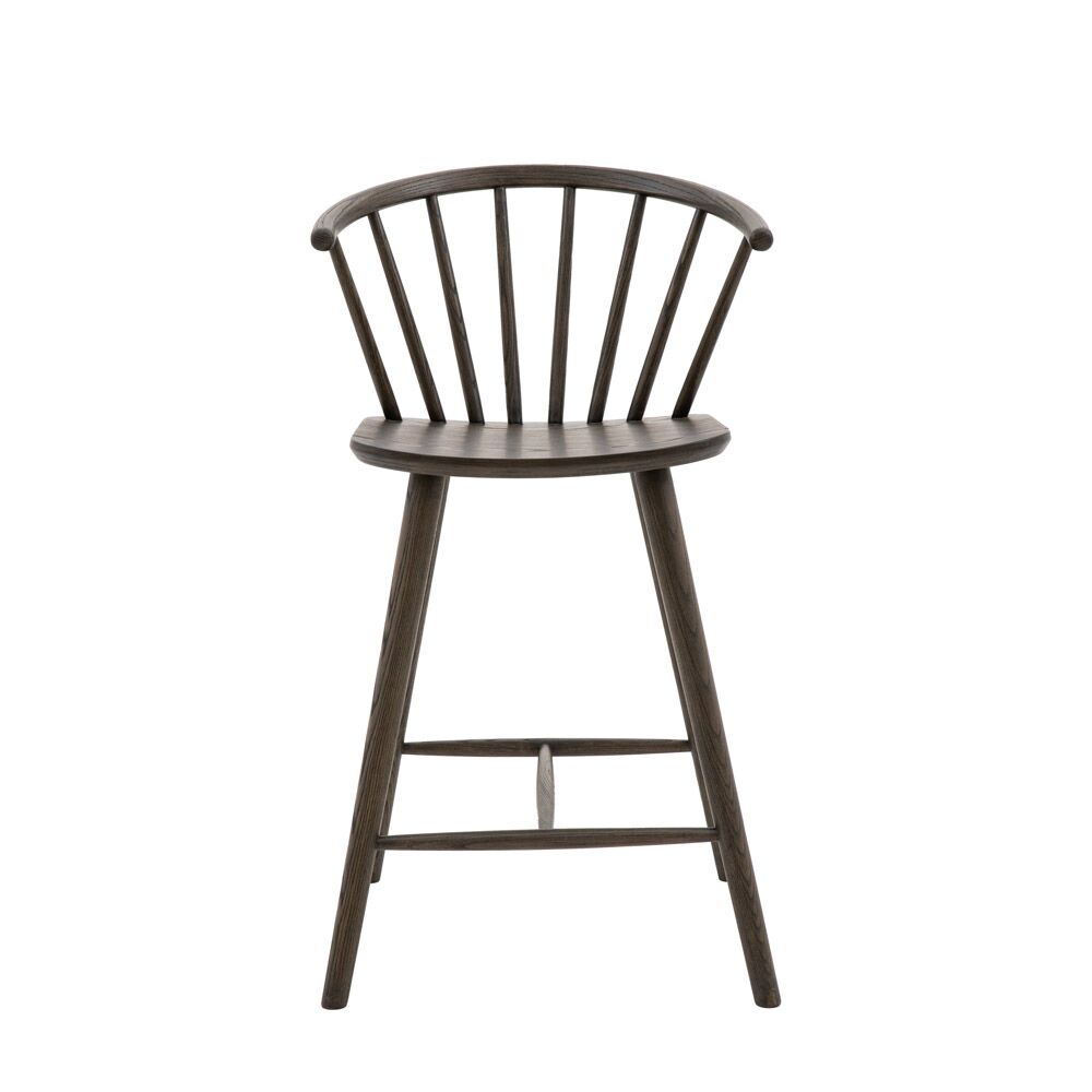 This stylish barstool features elegant turned legs and back spindles and a gently shaped seat. The wood has a lovely deep brown finish. Also available in a natural finish. Matching and coordinating pieces available.