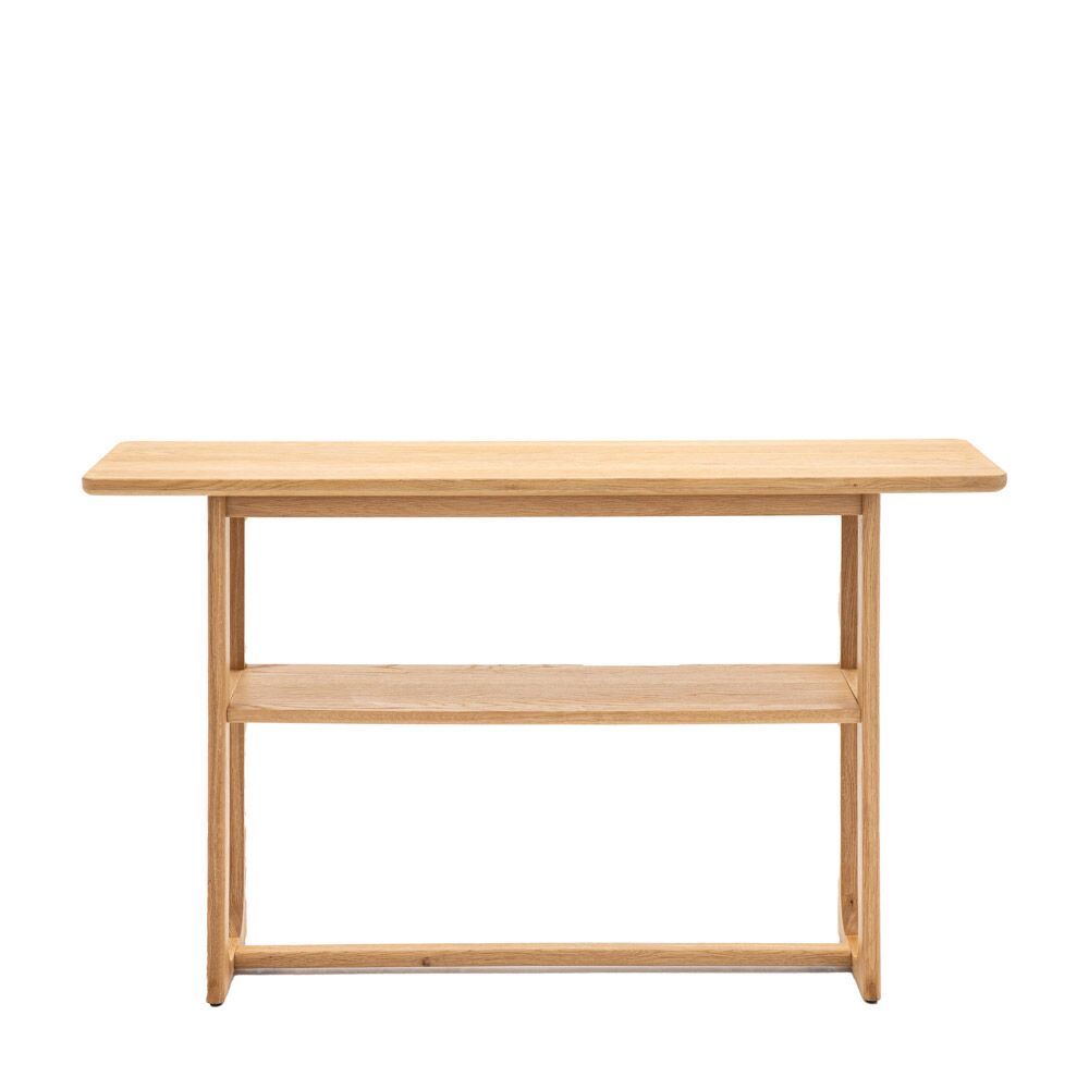 Crafted from the finest oak and structural oak veneers where practical, this beautiful console table would suit a wide range of interiors. The elegant underframe offers structural stability combined with style and the shelf adds extra practicality to the table. The wood has a lovely natural finish. The table is also available in a smoked finish, and matching pieces are available.