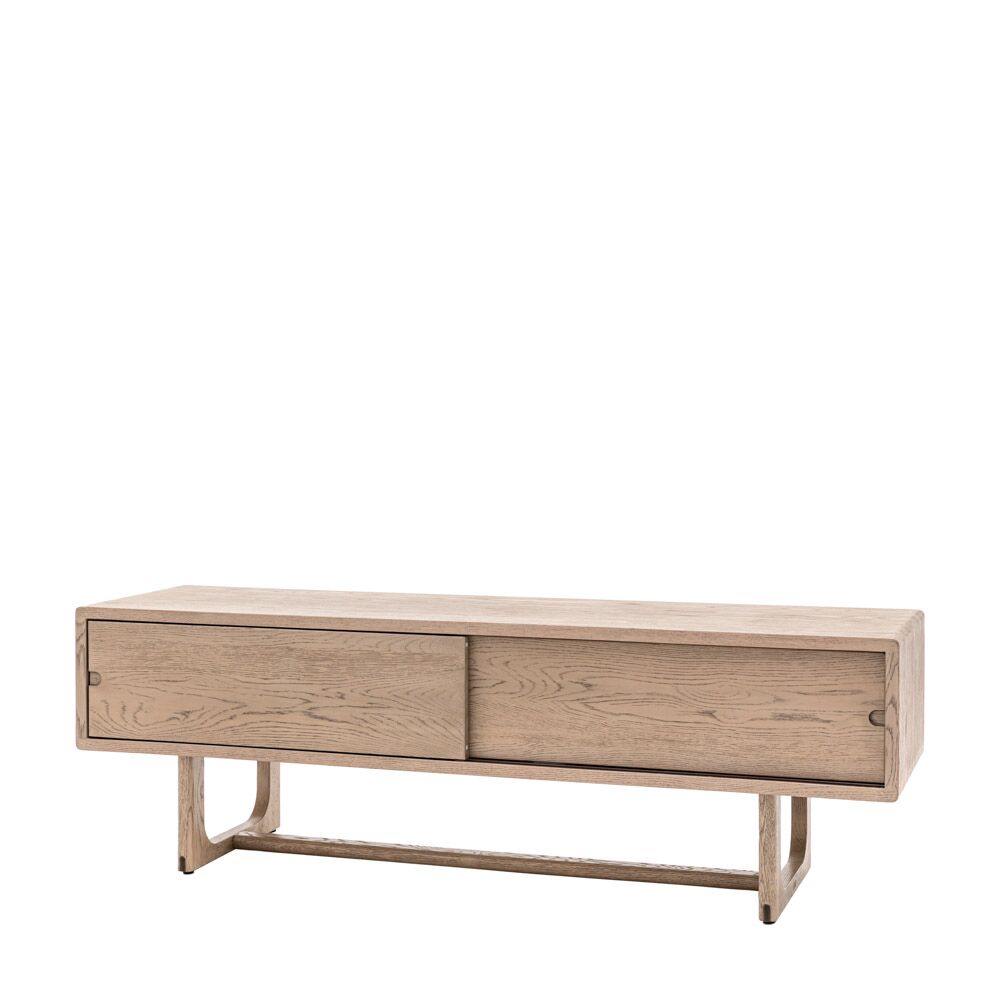 With its cut-out handles on the sliding doors and beautifully shaped underframe, this lovely media unit offers stunning design. It is crafted from the finest oak and oak structural veneers where practical, with a smoked oak finish. Finger joints on the corners of the piece, a technique found on high quality cabinetry, give strength and a sense of purpose and tradition to create long-lasting, legacy furniture that can be collected and handed down through generations. Also available in a natural finish. Matching pieces available.