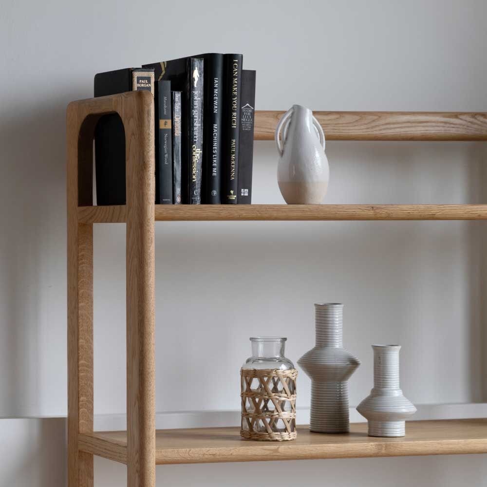 Crafted from the finest oak and structural oak veneers where practical, with a lovely natural finish, this stunning open display unit offers stylish elegant design. Also available in a smoked oak finish, and matching pieces are available.