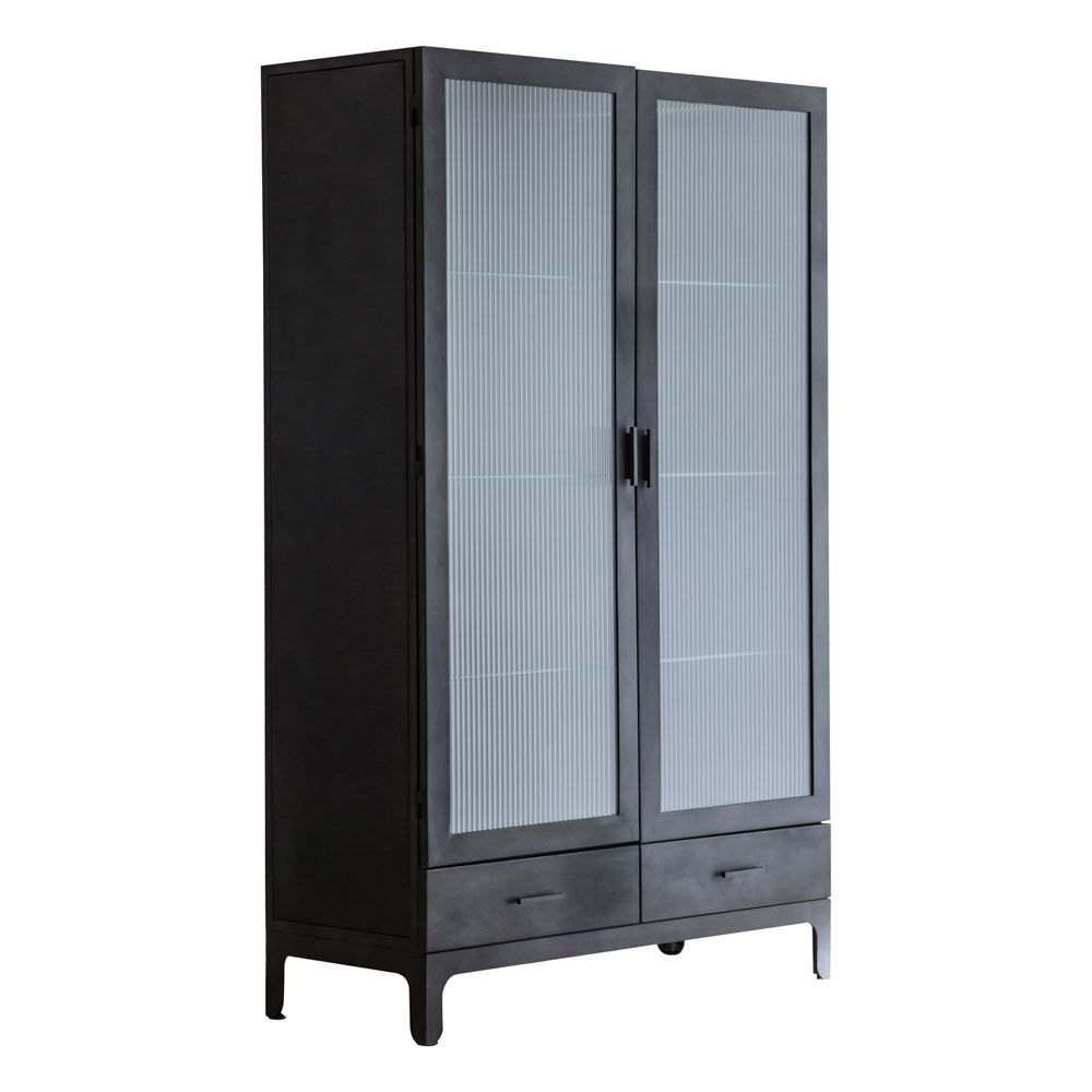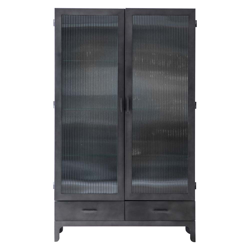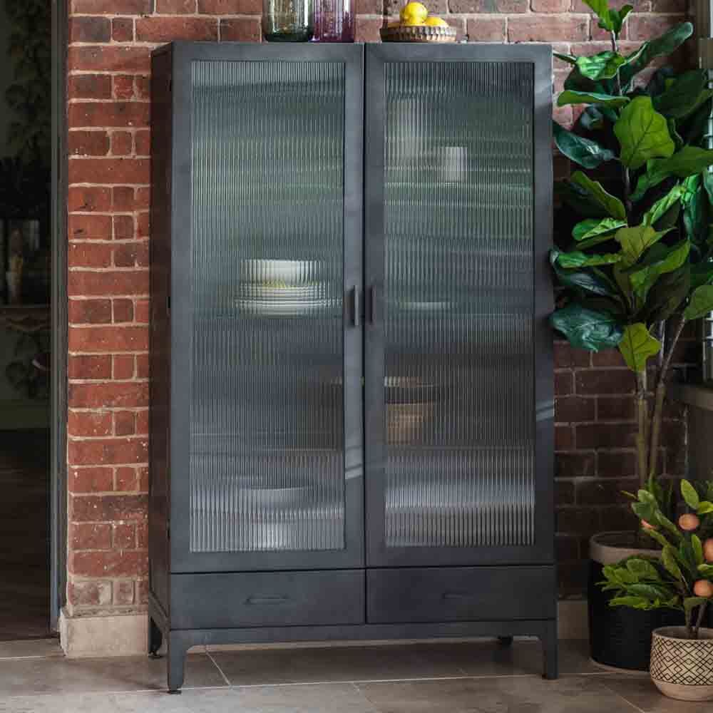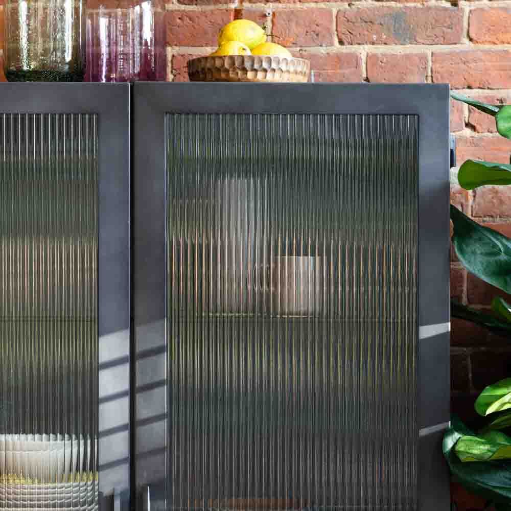 For a retro feel, this 2 door display unit offers an updated take on a classic 50?s look. The matt grey finish of the steel pairs beautifully with the ridged tempered glass creating a stunning piece which would look at home in a wide variety of interiors, including orangeries and conservatories to add an unusual twist to their look. There is also a 1 door version.