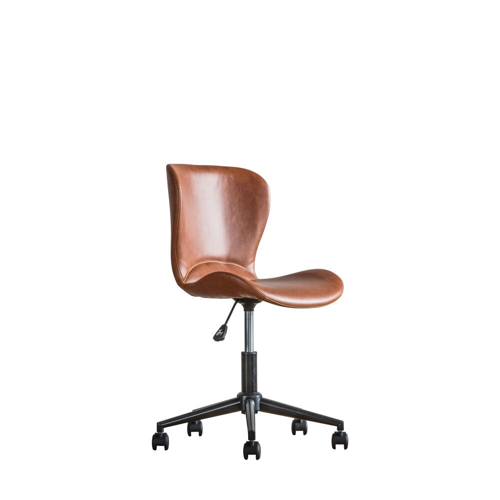For smaller spaces, this swivel chair is ideal, yet for all its compact design, it still offers fantastic comfort. Upholstered in faux brown leather, the chair has gas lift seat height adjustment and castors for easy manoeuvrability. Also available in charcoal.