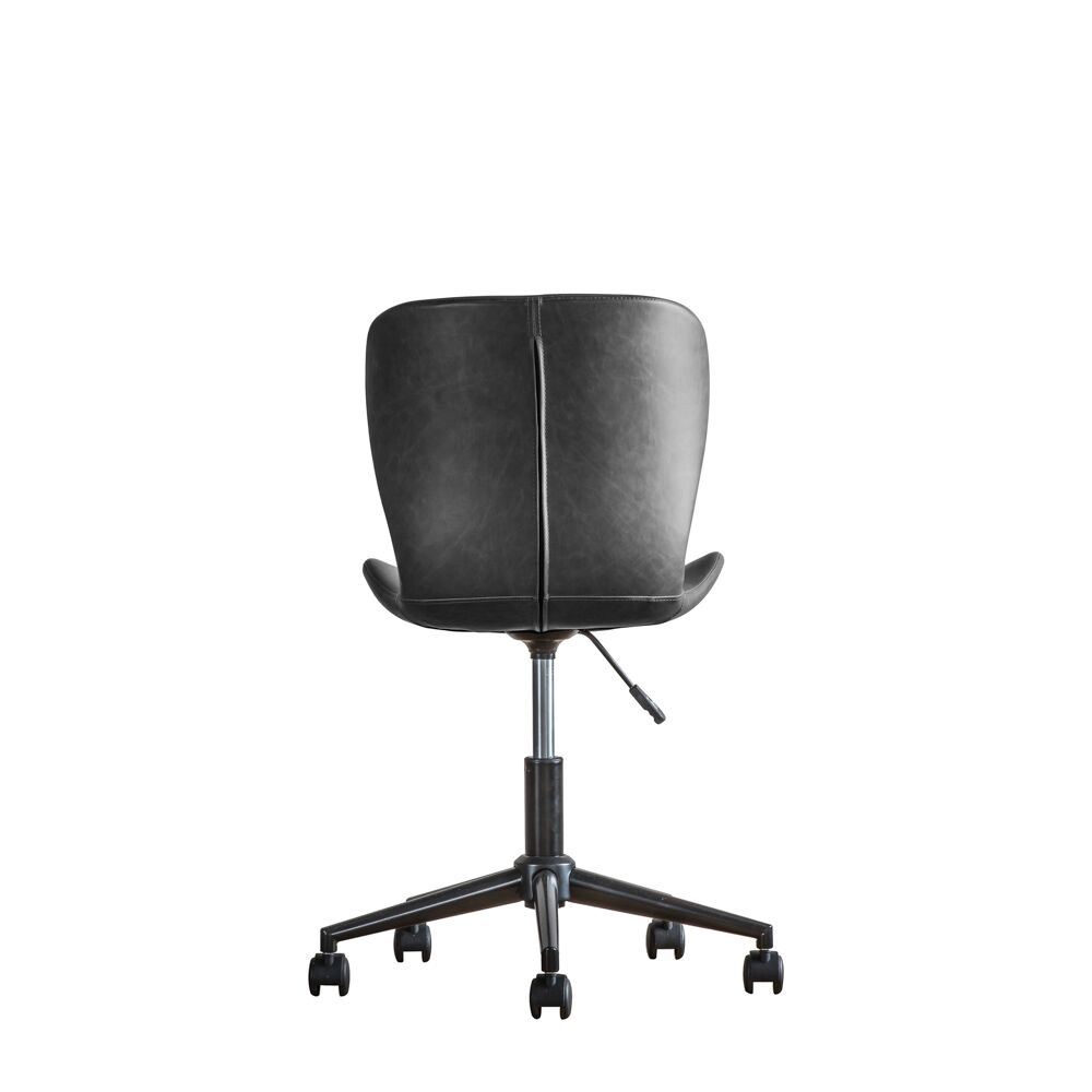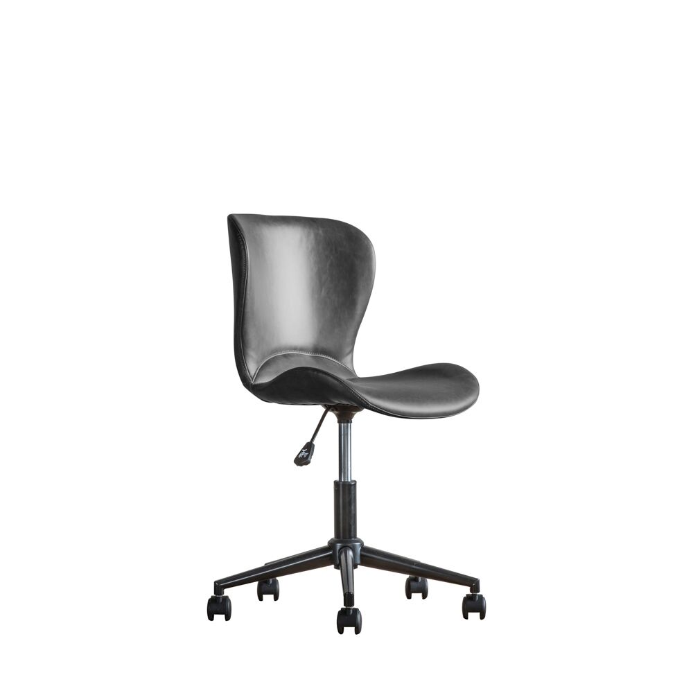 Ideal for smaller spaces thanks to its neat compact design this swivel chair still offers fantastic comfort as well. Upholstered in faux charcoal leather, the chair has gas lift seat height adjustment and castors for easy manoeuvrability. Also available in brown.