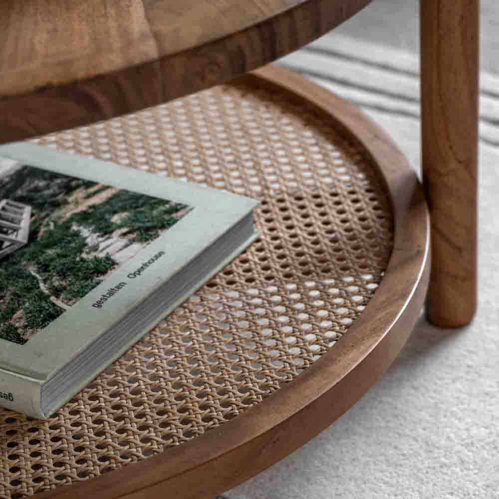 With a modern twist on boho design, this coffee table is the perfect addition to contemporary and vintage influenced interiors. Made from richly grained Mango wood with a woven rattan lower shelf perfect for storage. Coordinating additional pieces also available. Coordinating pieces also available.