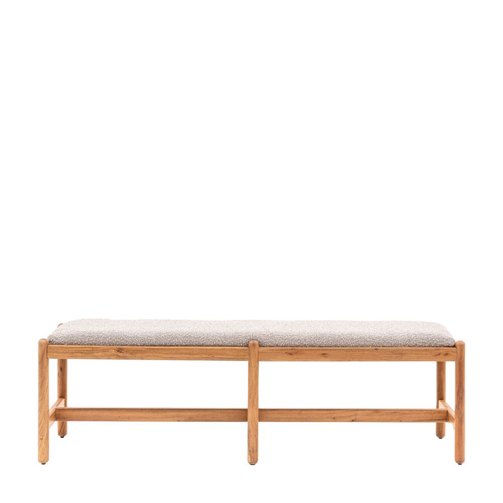 The perfect complement to our coordinating dining table this dining bench’s reto influence is clear. Giving a modern twist to the vintage inspired design the rich Mango wood bench is upholstered in tactile grey Boucel fabric. Coordinating pieces also available.