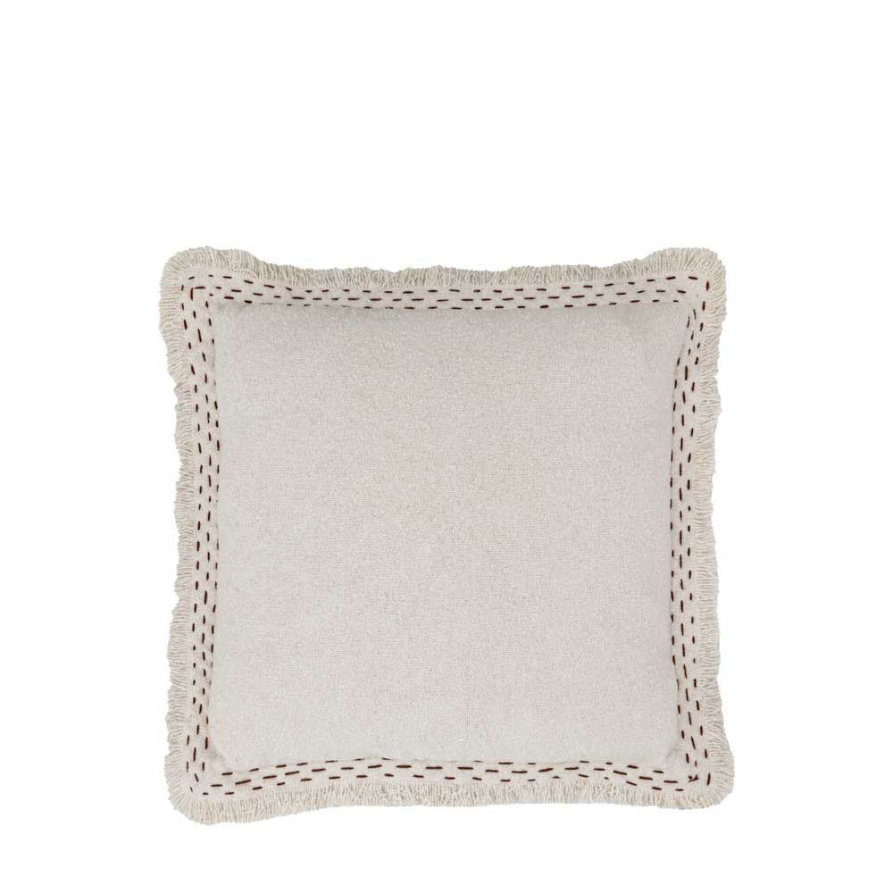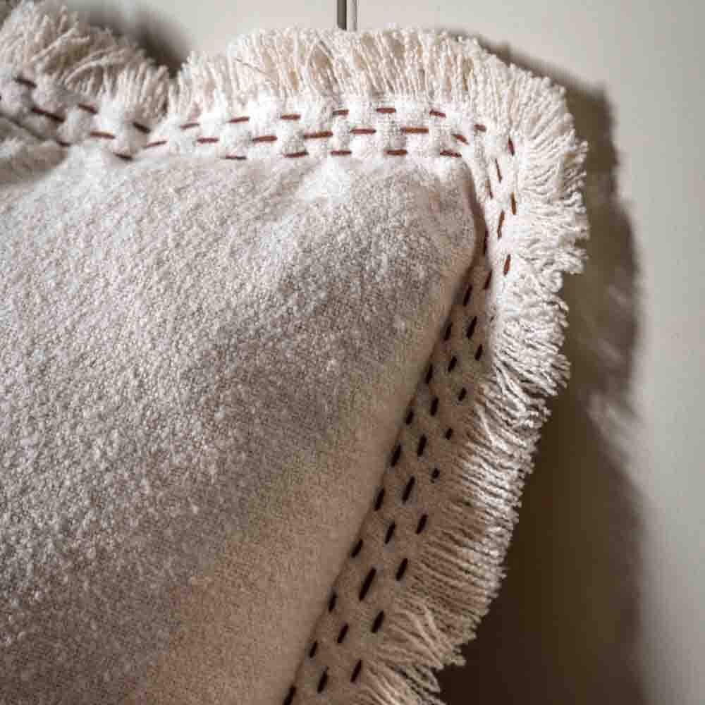 Soft and tactile, this textured plain cushion forms part of our collection of globally inspired, handcarfted Indian textiles. Featuring a richly textured weave and hand stitched detailing around the feathered edges.