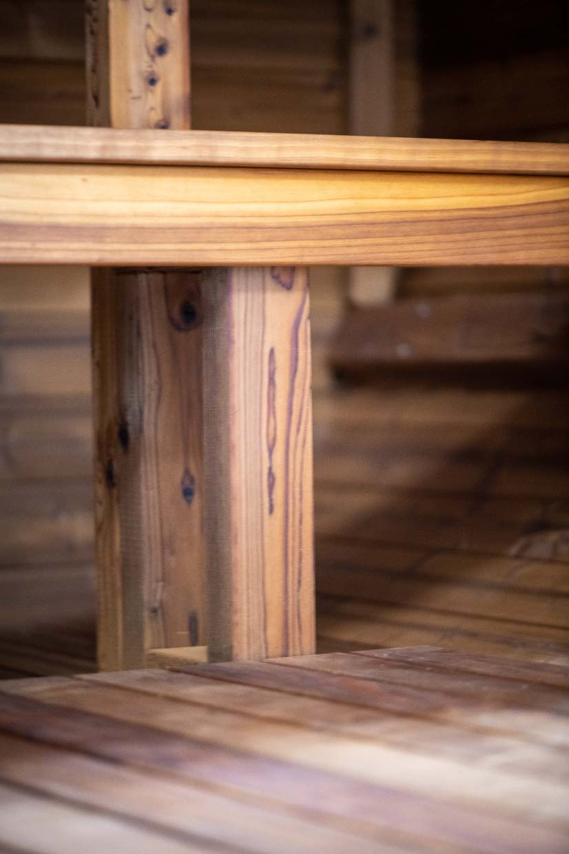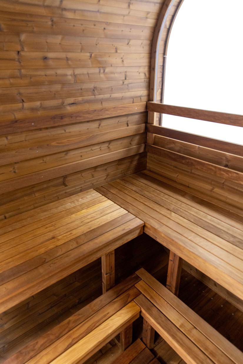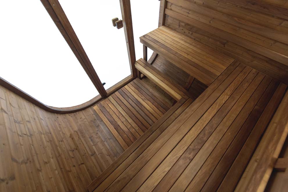 Because there is less unused airspace to heat, less energy is required to heat the room. The thick staves are excellent insulators, and the exterior of the sauna will remain cool to the touch.