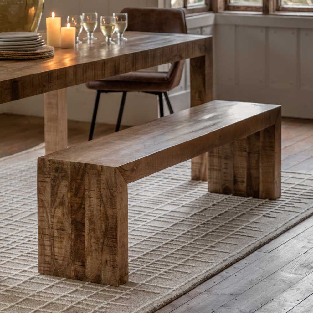 This dining bench in Natural is a versatile and stylish piece that can be used in a variety of settings. Its minimalist design and natural finish add a touch of rustic charm to any space.