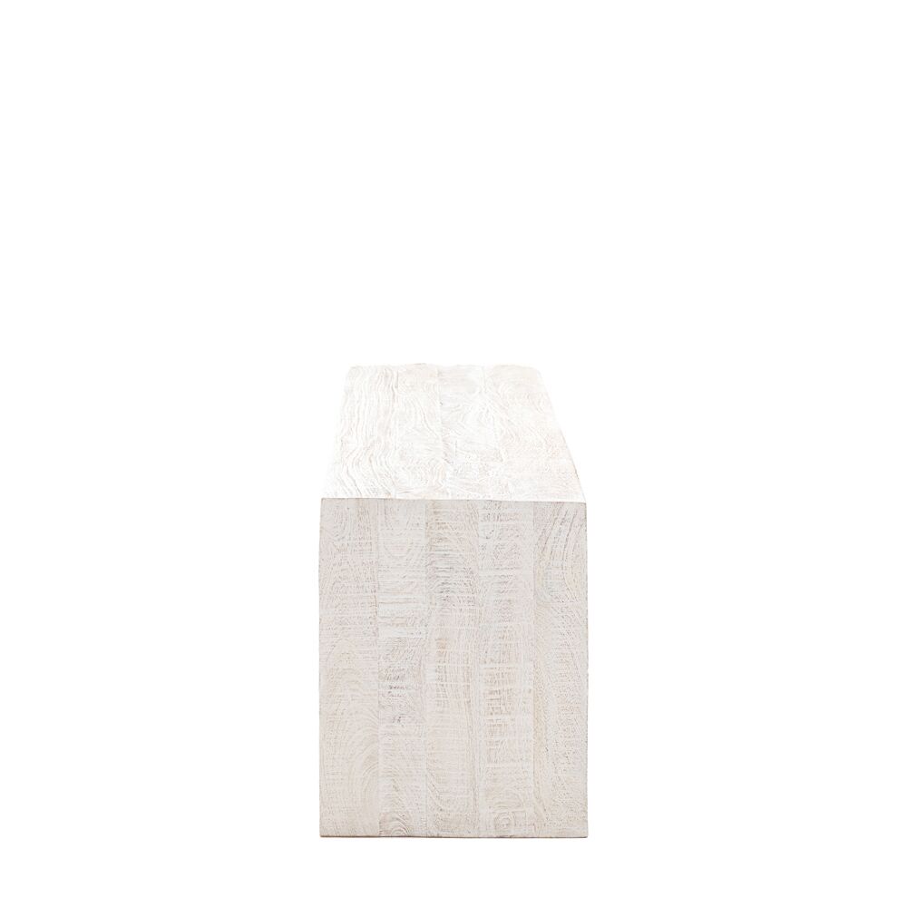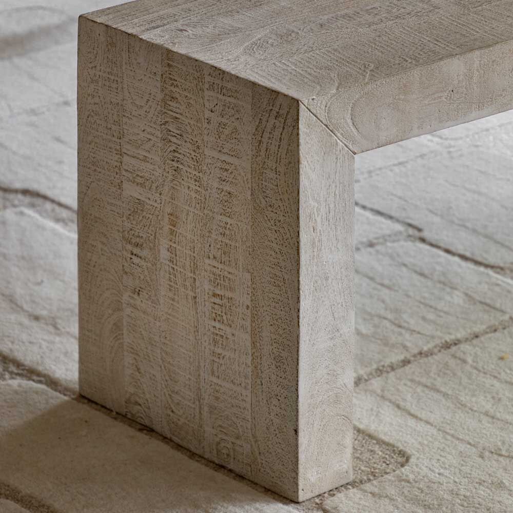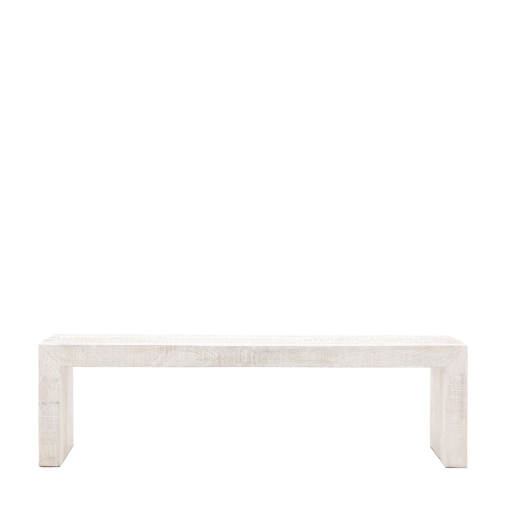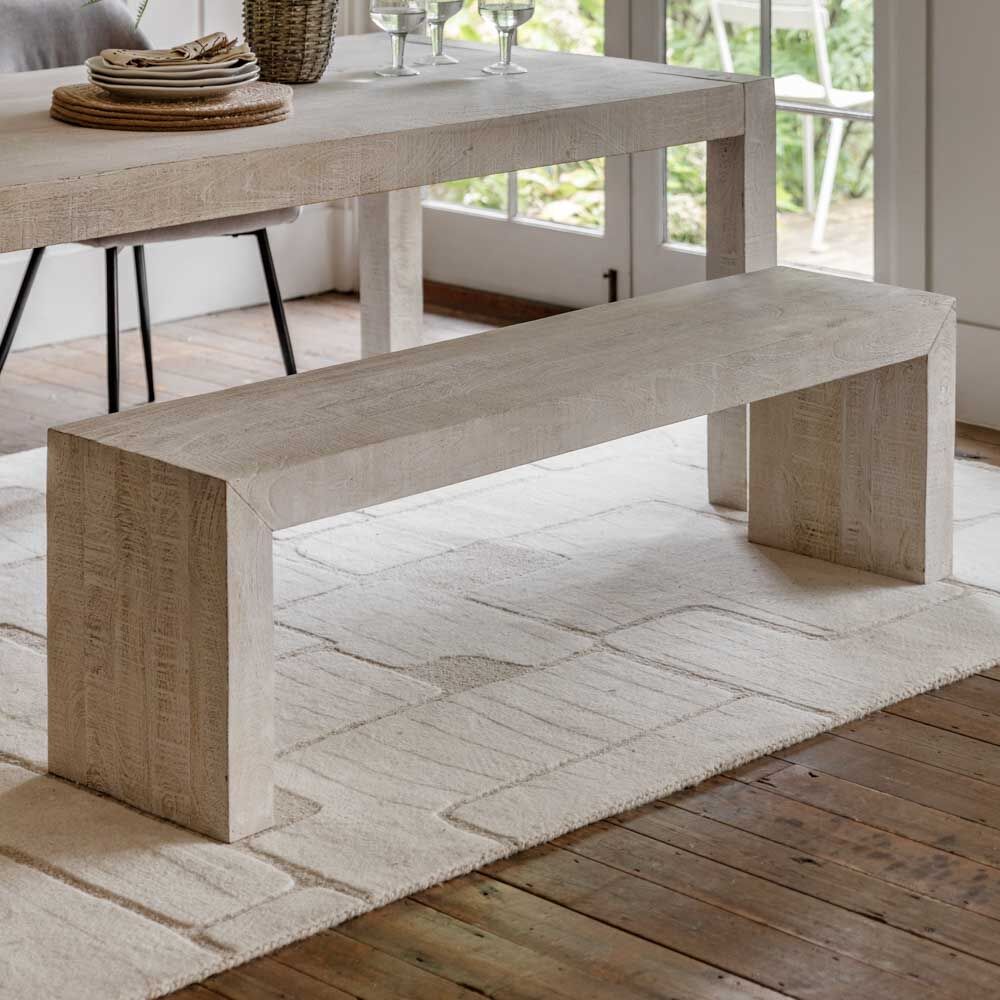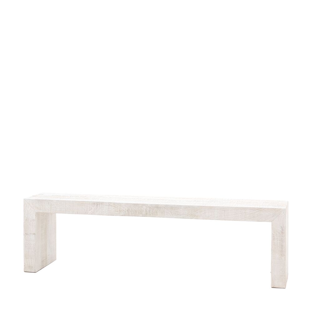This whitewash dining bench is a versatile and stylish piece that can be used in a variety of settings. Its minimalist design and distressed whitewash finish add a touch of rustic charm to any space.