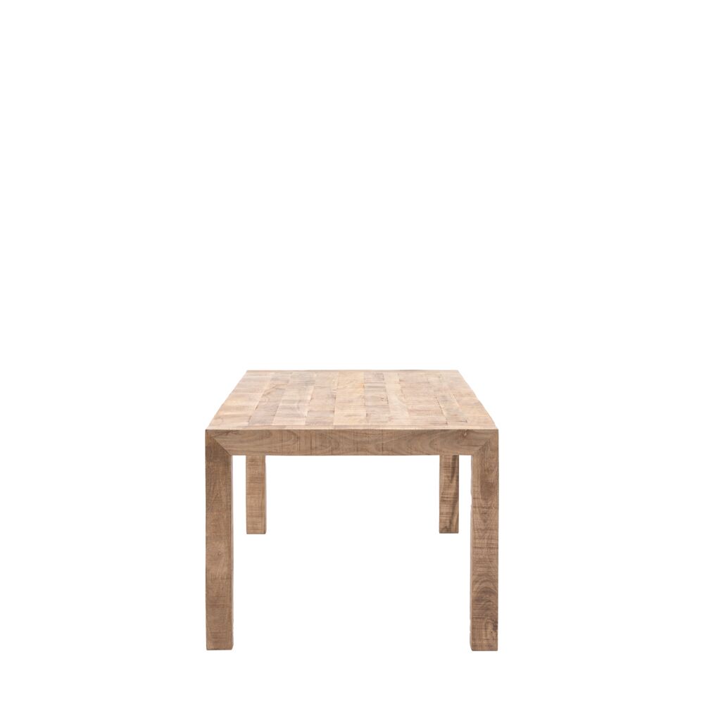 This dining table is a versatile and stylish piece that can be used in a variety of settings. Its minimalist design and natural wood finish add a touch of rustic charm to any space. The solid mango wood construction ensures durability and longevity, making it a perfect choice for everyday dining.