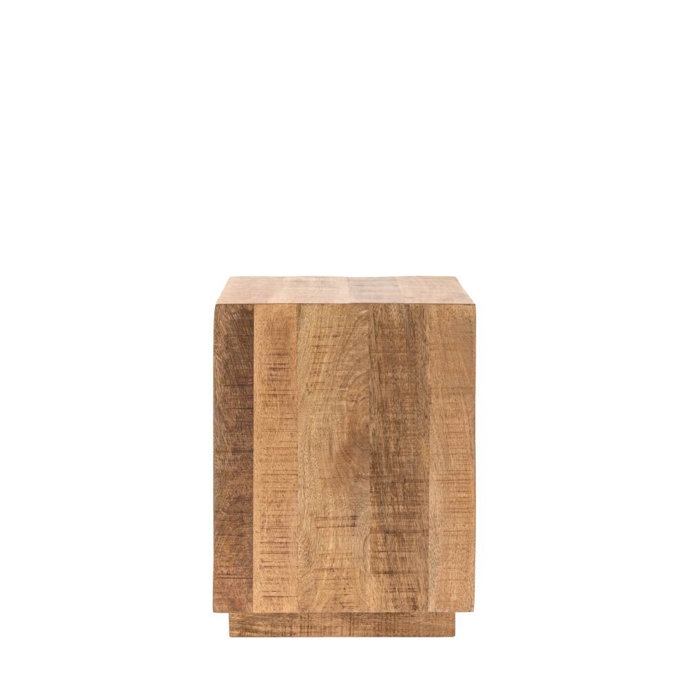 Rusticaly charming this chunky side table is designed to let the rough hewn Mango wood speak for itself. The stepped blocky shape of this table shows off the wood to its best and creates a table perfect for any modern rustic home interior. Also available in a whitewash finish. Coordinating additional pieces available.