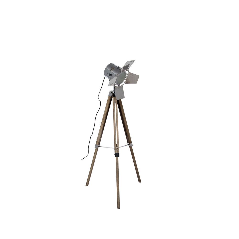 Add a touch of Hollywood glamour to your home with this natural wood and nickel tripod floor lamp. Featuring a film light head with shutters, this floor lamp makes a statement in any room. Also available as a table lamp.