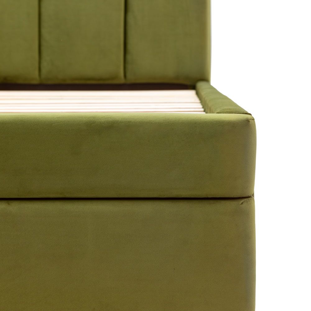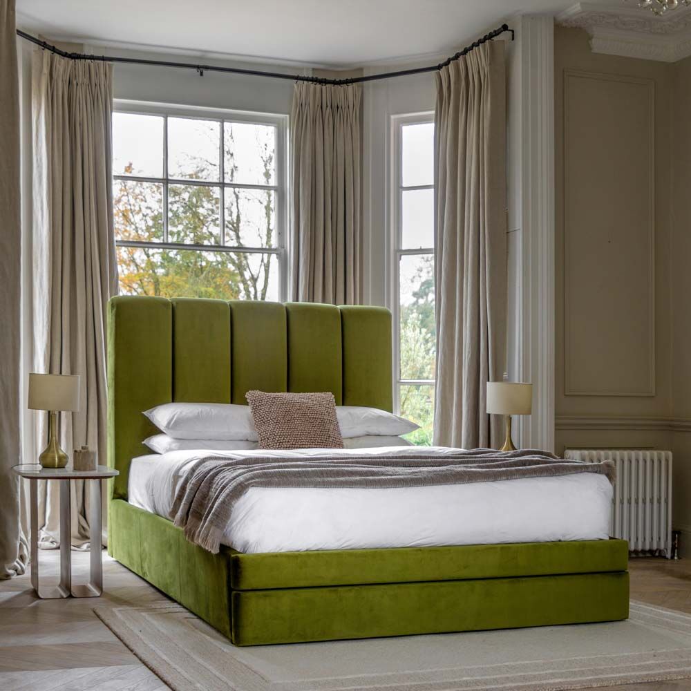 Contemporary elegance meets luxurious comfort. The rich green padded panel headboard adds sophistication and texture, creating a bold focal point and a cosy backdrop for restful nights.