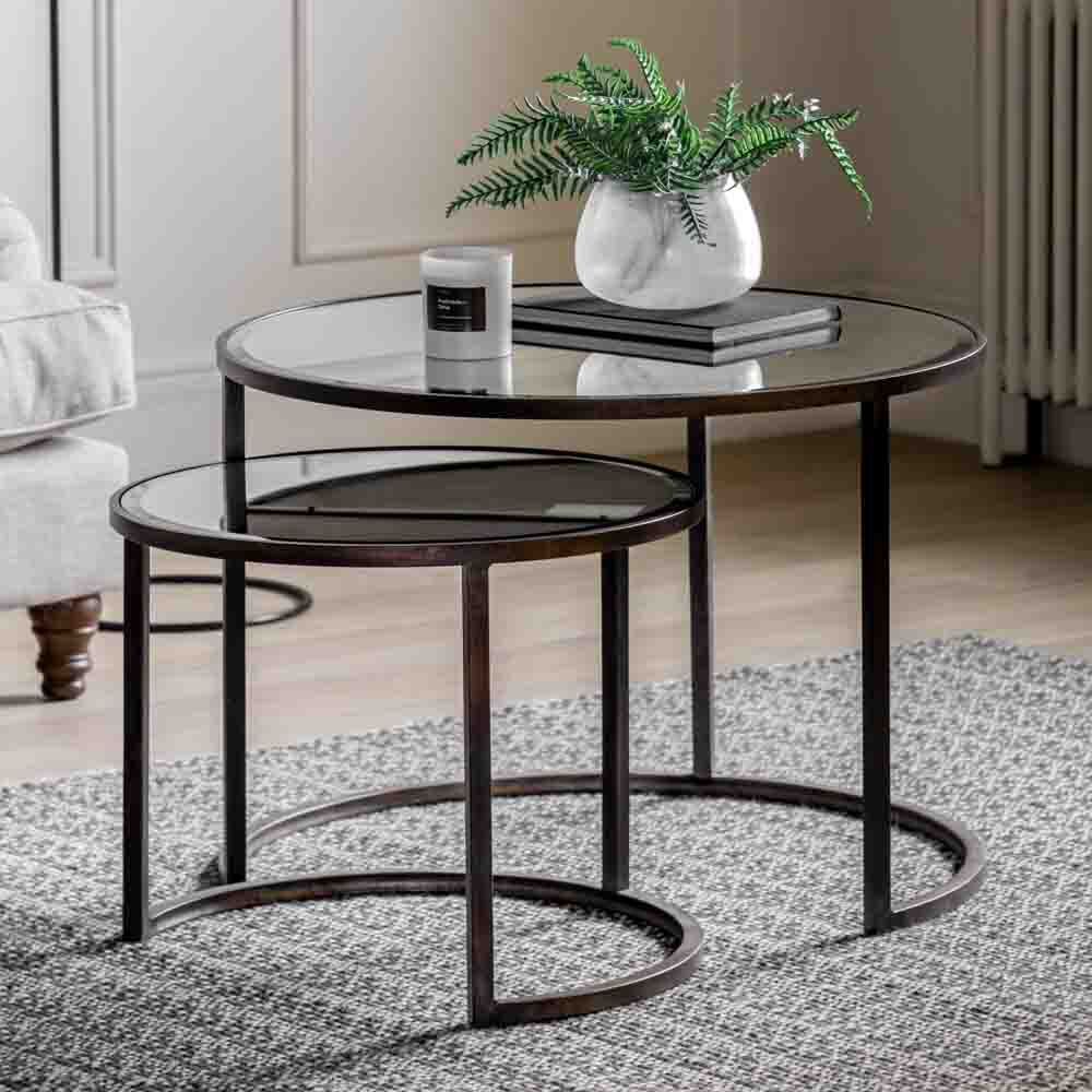 Set of two coffee tables, 750x750x550mm and 550x550x450mm.