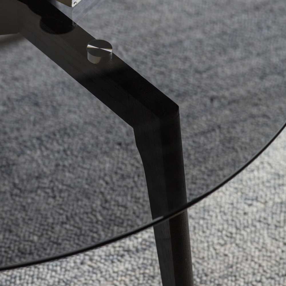 This lovely coffee table features a beautifully designed solid oak base with a black finish combined with a smoked tempered glass top to give a stunning contemporary look. It is part of a collection offers a range of tables, in the black oak and smoked glass, and also with natural oak bases paired with clear glass.