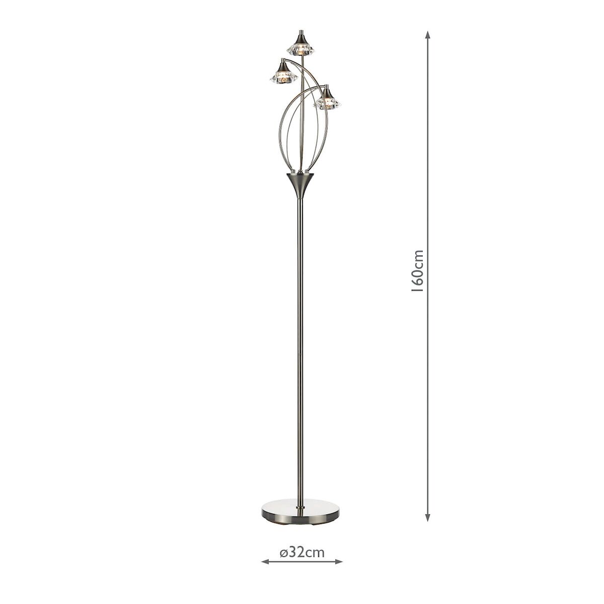 Luther 3 Light Floor Lamp Satin Chrome Crystal