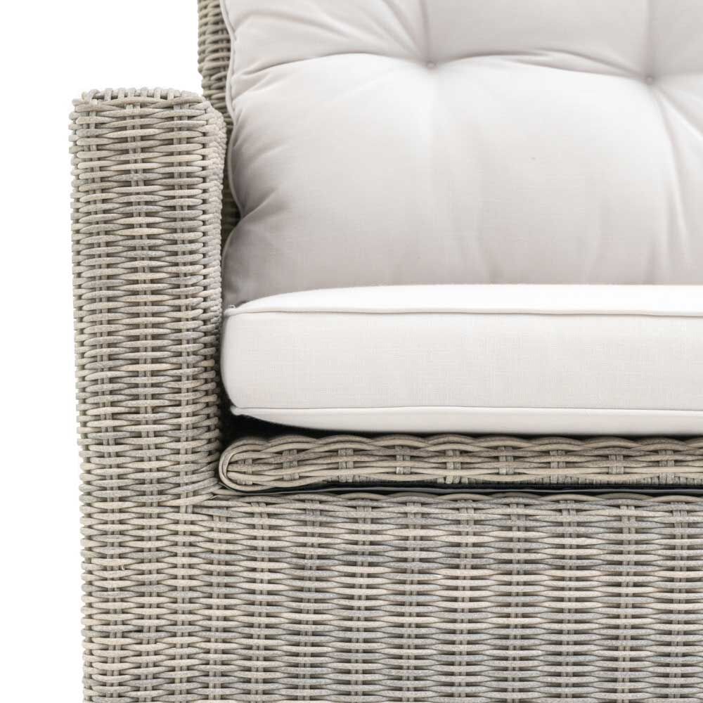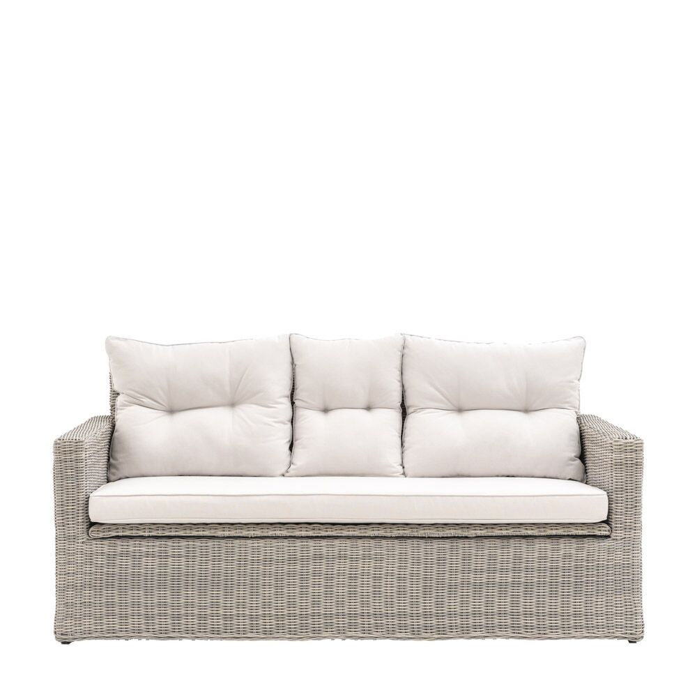 This stylish outdoor sofa offers both comfort and practicality. Crafted with a blend of natural wicker and plush cushions, it provides a relaxing and inviting seating option. The neutral color palette complements any outdoor decor, while the durable construction ensures years of enjoyment. And with under-seated storage, you can keep your outdoor essentials organised and within easy reach.