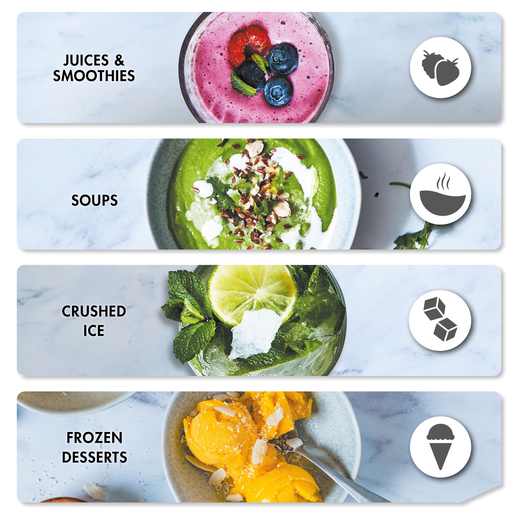 The Blender Power 4 couldn’t be simpler to use thanks to its 4 automatic programmes: