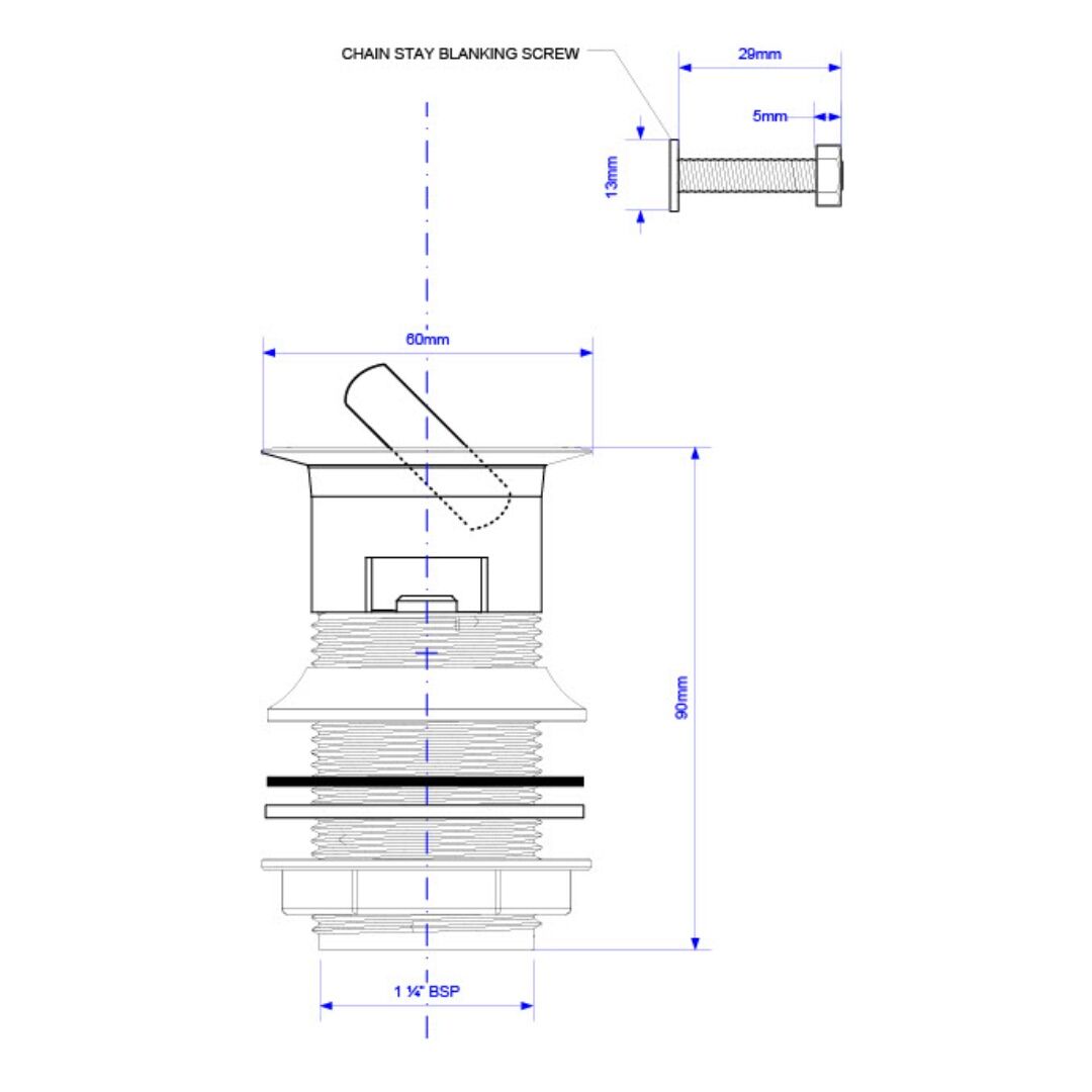 1?? Chrome Plated Brass Basin Waste ? Backnut Model: 60mm Flange x 31/2? Tail with Swivel Plug, Available Slotted or Unslotted