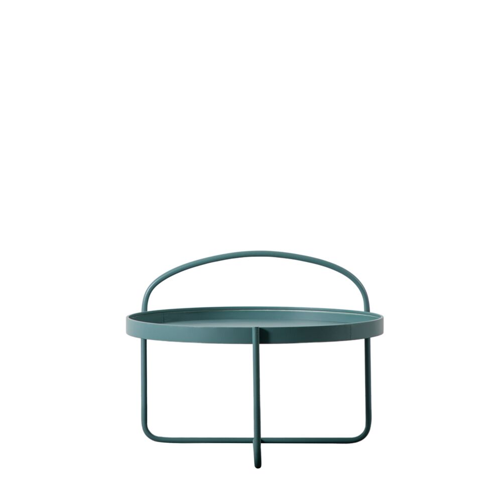 The stylish design of this unusual coffee table features a tray-style top, which lifts off for added practicality, and a continuation of one section of the base, up and over the table to create a ?handle? effect. Both the tray top and base are made from metal with a painted finish. A matching side table is available. Both are offered in a choice of six colours, from eye-catching tones, which are ideal for adding a pop of colour to room, to softer colours, for those who prefer a more subtle look.