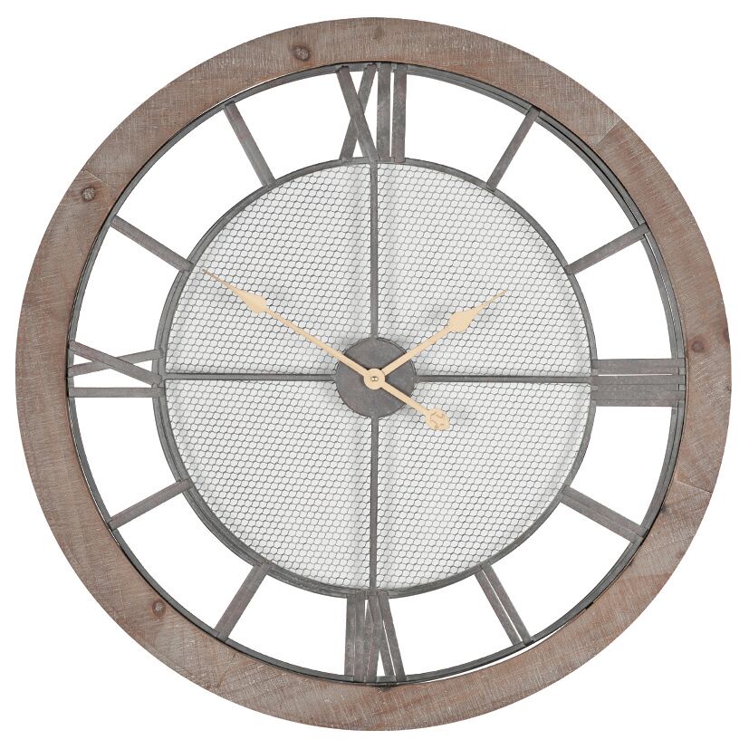 Natural Wood & Metal Round Wall Clock