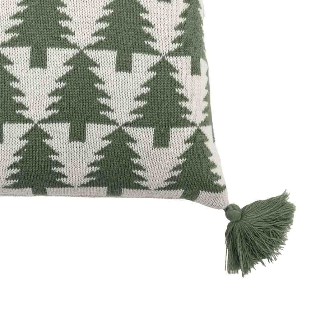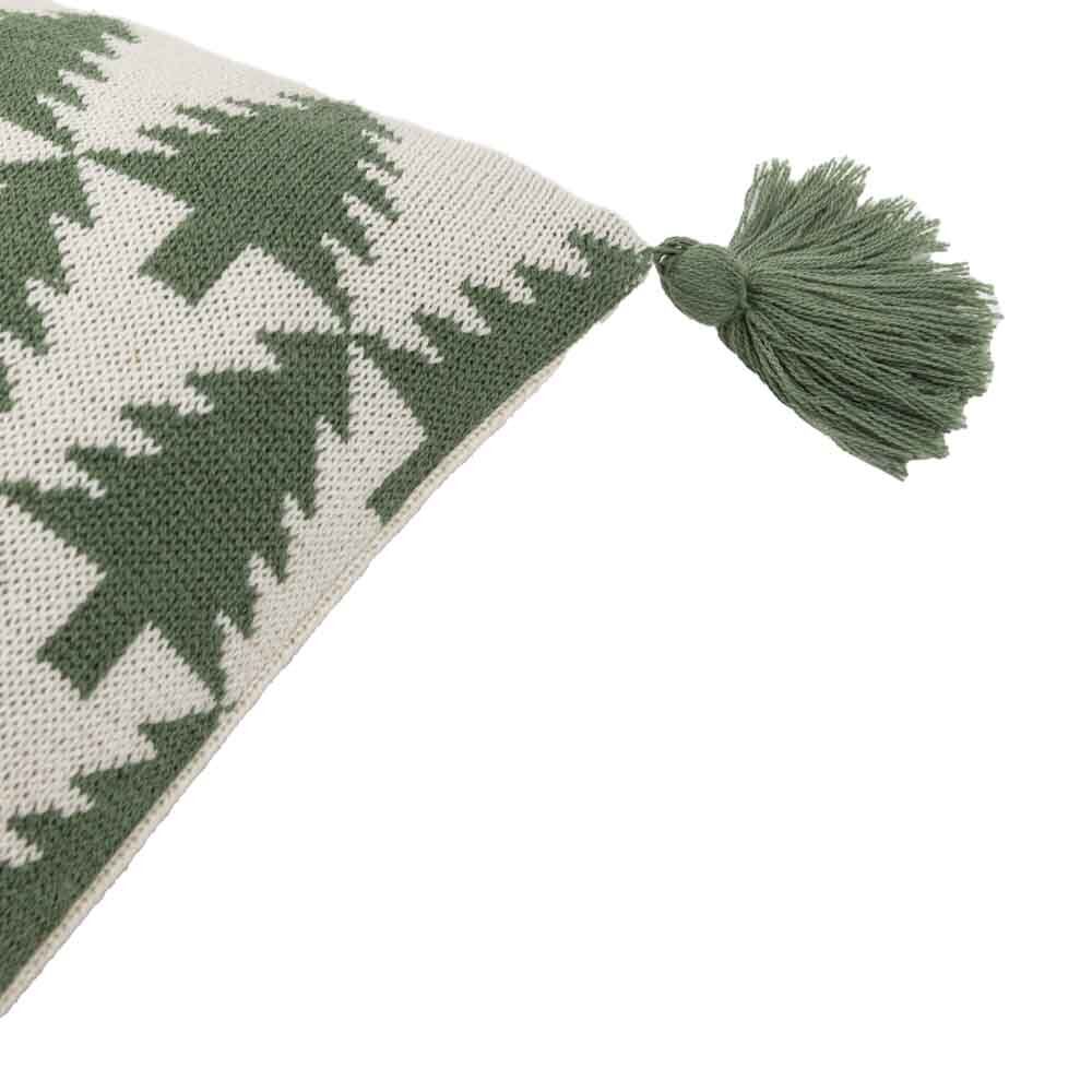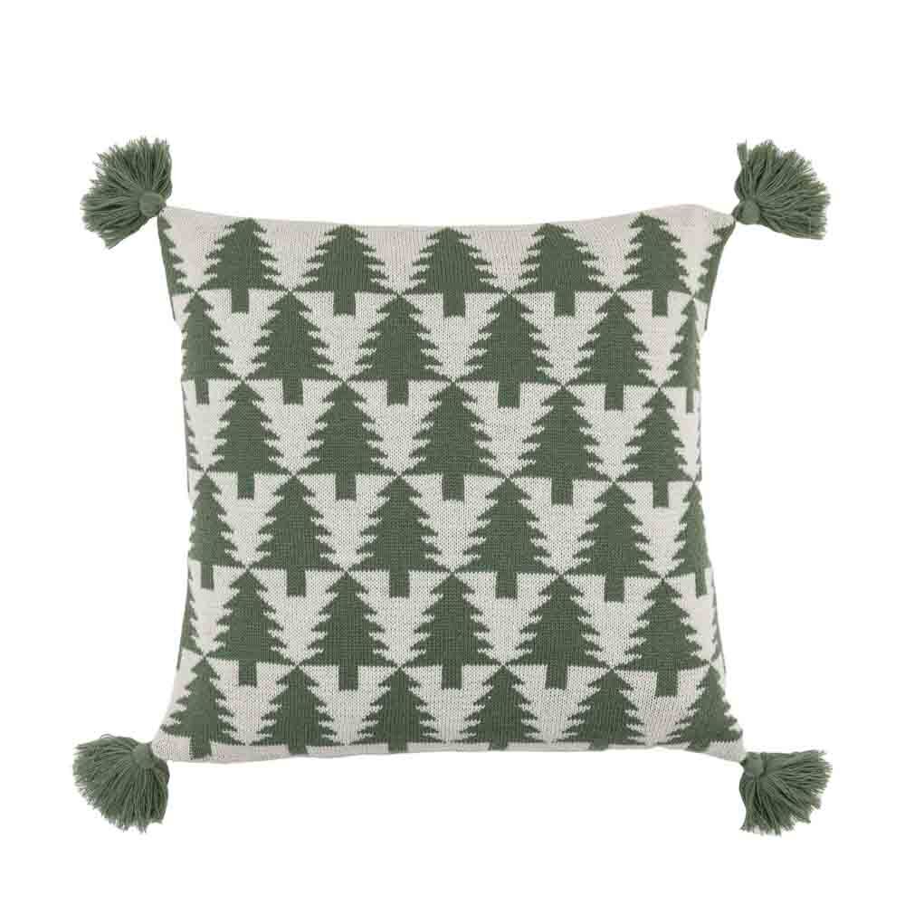 With a repeating Christmas tree pattern and soft green tassels at each corner this Scandi inspired cosy cushion is as comfy as a Christmas jumper.