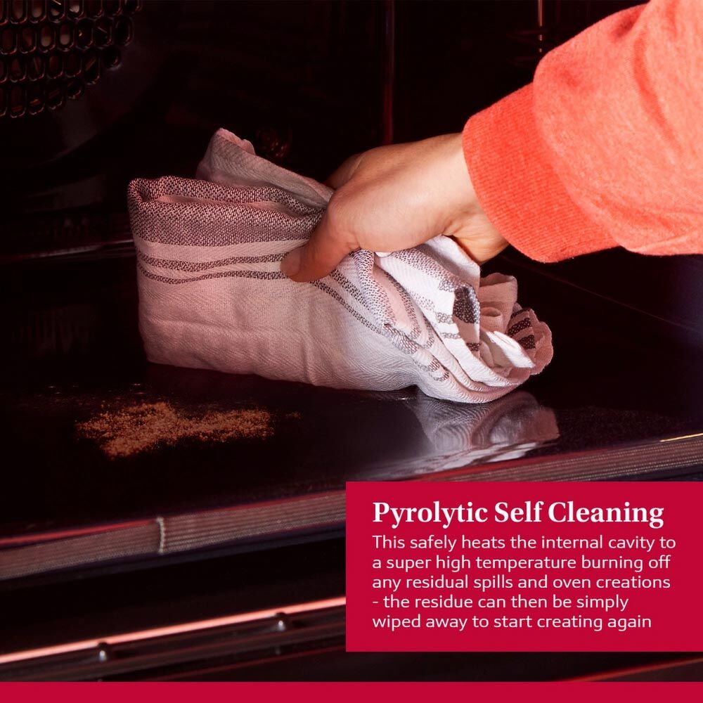 With its advanced pyrolytic self-cleaning feature, maintaining a spotless interior has never been easier; simply set the oven to clean itself, and enjoy more time for cooking delicious meals and less time on cleanup.