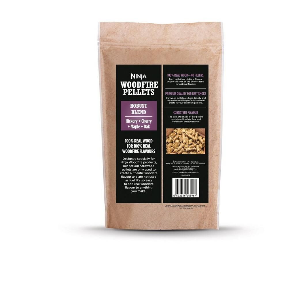 Developed for use with Ninja Woodfire Electric BBQ Grills, these wood pellets are only used for flavour and not fuel – so a little goes a long way. The Robust blend features the perfect ratio of hickory, cherry, maple, and oak for a rich, classic BBQ flavour. They pair perfectly with meat and poultry and a 900G bag provides up to 20 cooking sessions. The XSKOGRBLPL2UK is 100% real wood and is an authentic addition to your grill cooking.