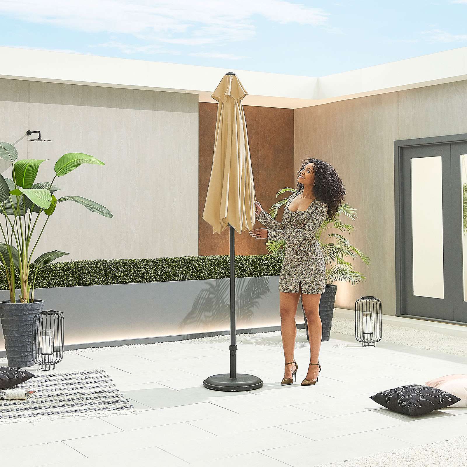 The 2.4m Round Aluminium Garden Parasol – Crank & Tilt – Beige would fit through the parasol hole of your chosen dining table or can be used as a freestanding parasol to create a safe and shaded dining area when needed.