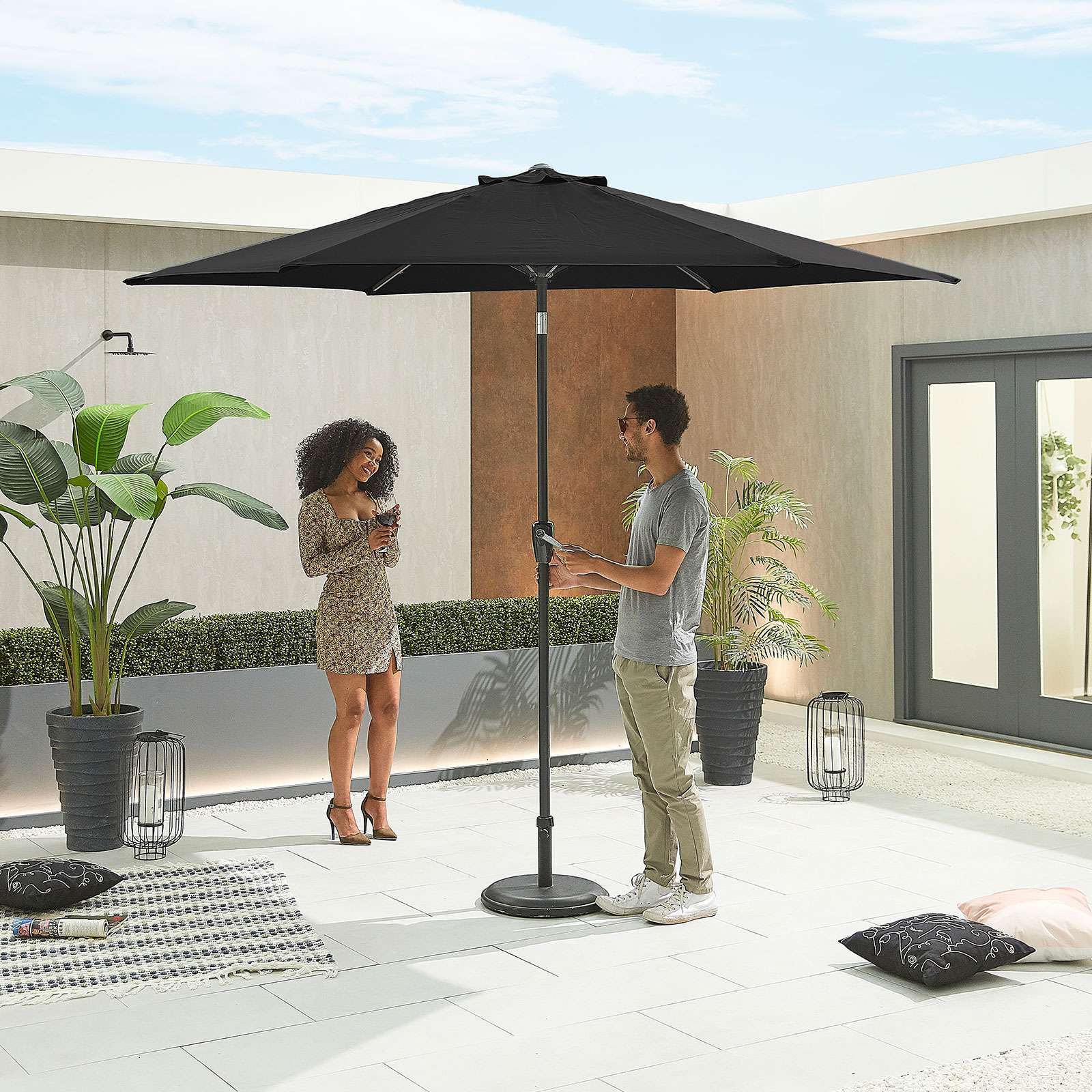The 3m Round Aluminium Garden Parasol – Crank & Tilt – Black is a great parasol that can be used alone or in conjunction with a dining table, thanks to the 38mm pole. The parasol rotates and tilts to project a shadow over your outdoor area without the need to pick up the parasol up and relocate it every time the sun moves.