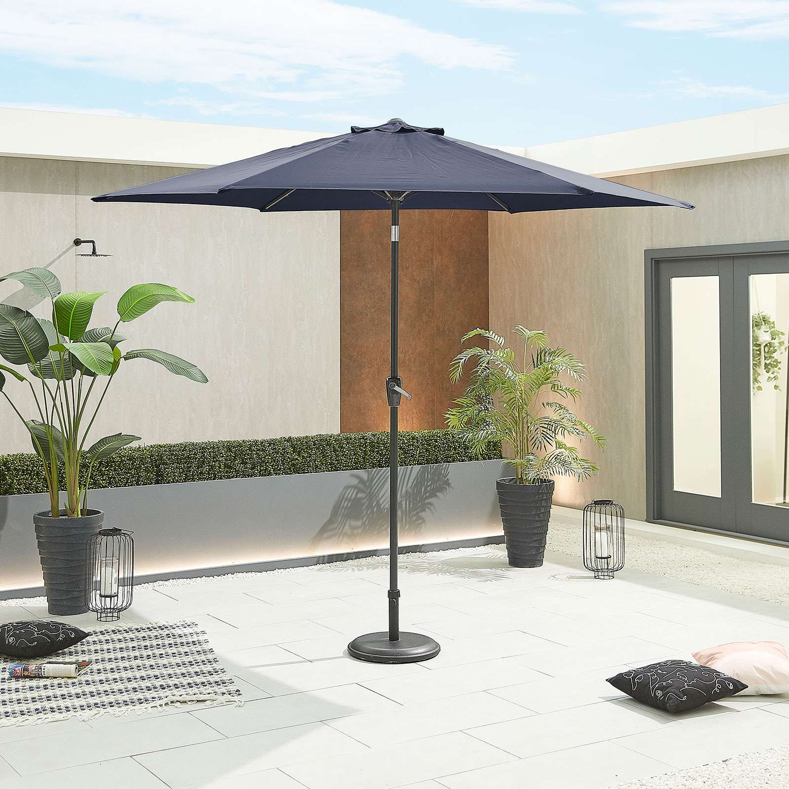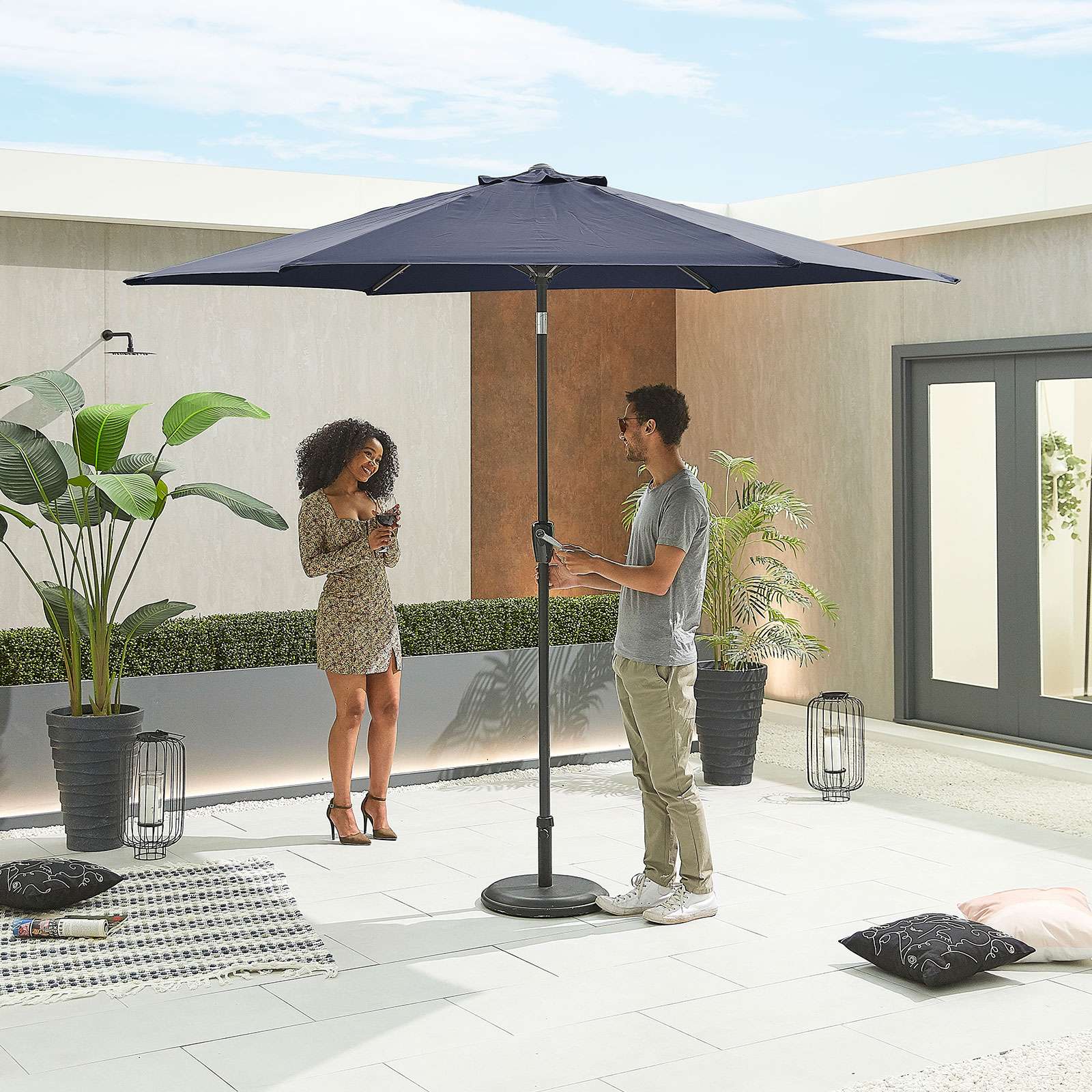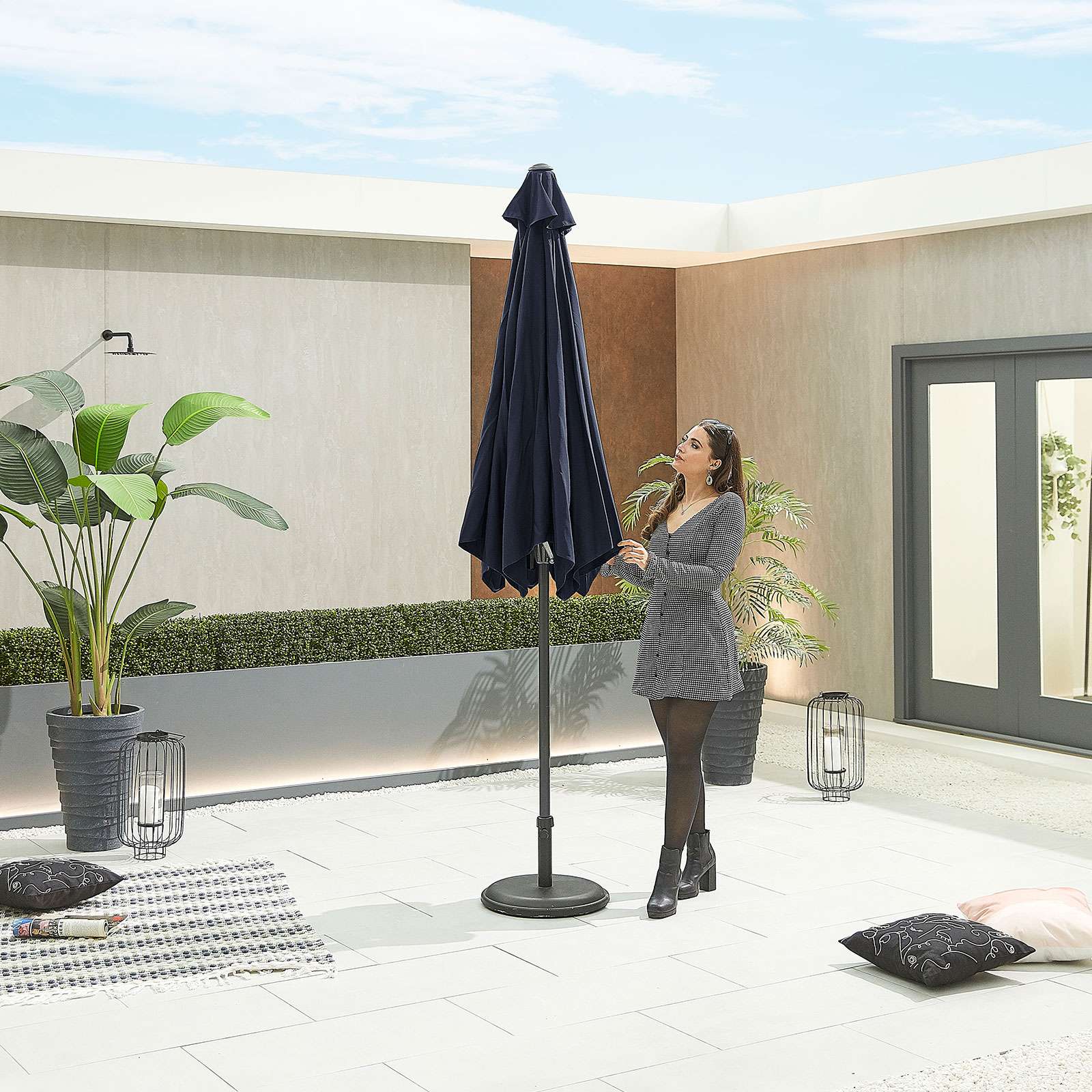 The 3m Round Aluminium Garden Parasol – Crank & Tilt – Navy is a great parasol that can be used alone or in conjunction with a dining table, thanks to the 38mm pole. The parasol rotates and tilts to project a shadow over your outdoor area without the need to pick up the parasol up and relocate it every time the sun moves.