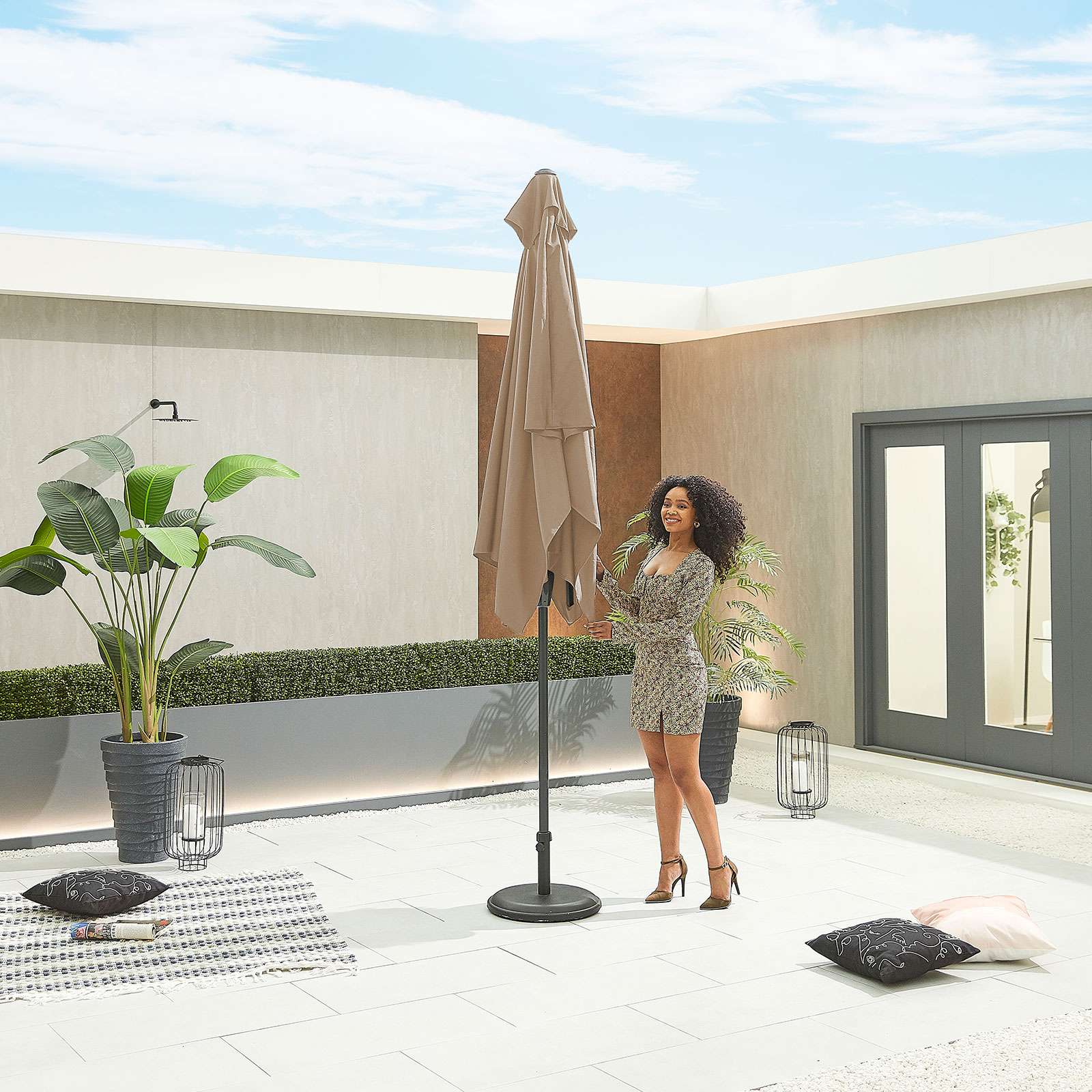 The 3m x 2m Rectangular Aluminium Garden Parasol – Crank & Tilt – Taupe is a great parasol that can be used alone or in conjunction with a dining table, thanks to the 38mm pole. The parasol rotates and tilts to project a shadow over your outdoor area without the need to pick up the parasol up and relocate it every time the sun moves.