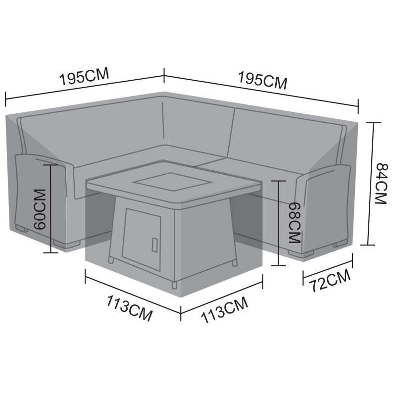 The Nova – Corner Dining Set Cover – Cambridge Compact Fire Pit is a weatherproof garden furniture cover designed to protect your furniture from dirt, rain, sun, snow, wind, and frost when not in use.
