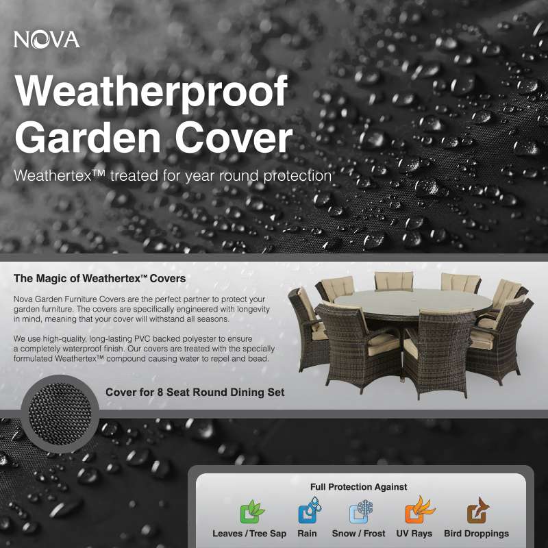 Protect your Garden Furniture from the elements with this excellent Cover For Large 8 Seat Round Dining Set. Nova covers are designed specifically to protect your garden furniture.