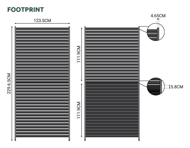 This item includes a 1 x 1.33m wall but to offer an even more private space we recommend purchasing multiple walls to fill the side. 3 walls would fill 1 x 4m pergola side. The maximum number of walls you could add to any pergola would be 11, allowing you space to enter the pergola. (Rectangular pergolas may require a combination of side wall sizes). Please note, for Titan pergolas ordered before 2022 you are unable to fix a side wall directly underneath where the crank handle is situated. Therefore, you will be able to fix a maximum of 2 side wall panels to the side with a crank handle, all other sides will take 3 side wall panels. For Titan pergolas purchased in or after 2022, 3 side wall panels can be added to any side of the pergola but do remember you will need to leave a gap to enter your pergola.