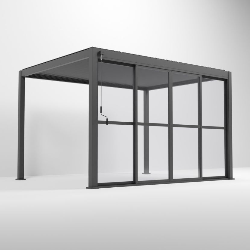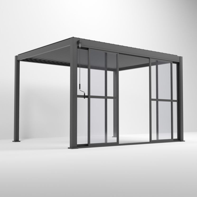 This accessory has been exclusively designed to fit the NOVA Titan and Titan Plus ranges. For models purchased prior to 2022, the crank handle positioning will obstruct fixing walls to the underneath and should be taken into consideration when designing accessory composition. For all free-standing pergolas ordered in 2022 and onwards, accessories can be fitted to all sides. As wall-mounted pergolas are angled away from the supporting wall, accessories can only be installed to the front side of the pergola. Drilling into the pergola structure will be required when fitting any accessories and so installation assistance may be necessary.