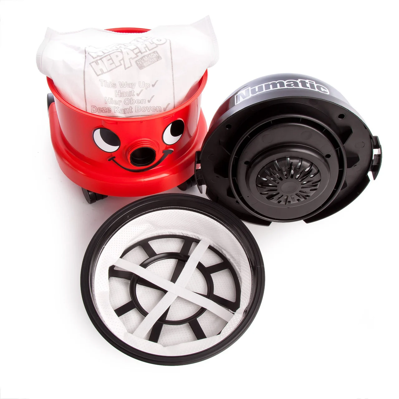 The Numatic NRV240 is a durable and reliable 9-litre commercial vacuum cleaner designed for heavy-duty use. It features a robust build with a protective bumper, a super long 12.5m cable, and a massive 31.8m cleaning range for efficient cleaning with fewer interruptions. Its high-performance HepaFlo filtration system ensures clean and easy disposal. With on-board storage and the professional NS1 accessory kit, every tool is within reach. Compact yet powerful, the NRV240 is built to handle all your cleaning needs with ease and convenience.