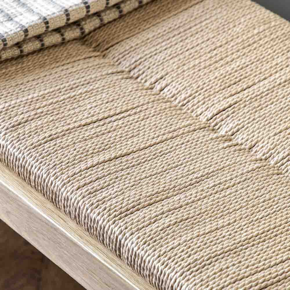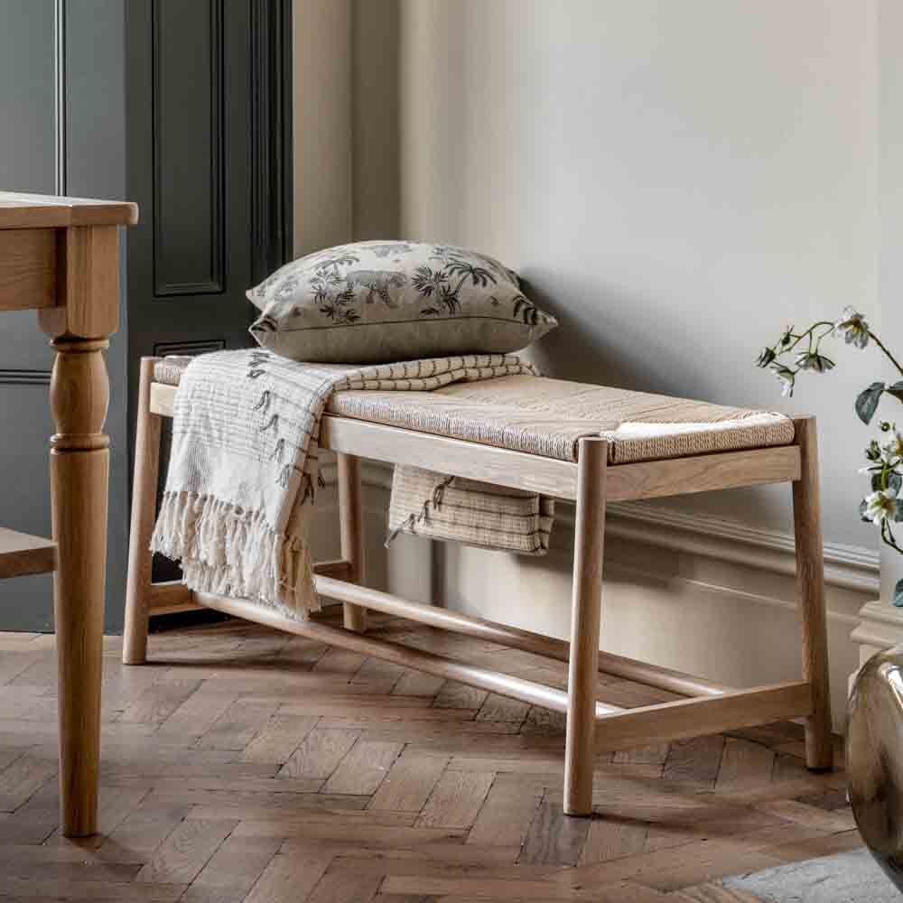 Bringing a modern contemporary edge to a traditional farmhouse look, this bench is perfect addition to any dining space. With a solid oak frame and a traditional style hand woven rope seat, this bench feels light and modern.