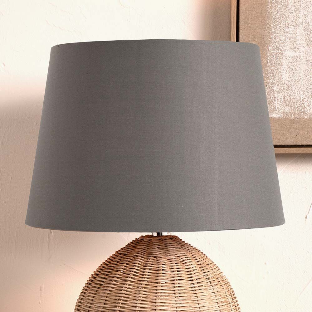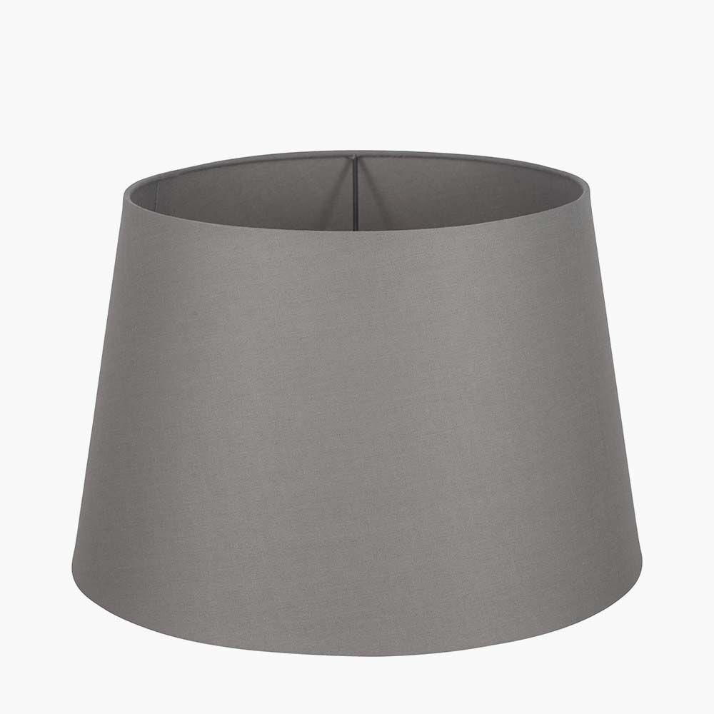 Simple modern 20cm steel grey tapered self lined cylinder poly cotton shade which sits beautifully with a variety of bases.